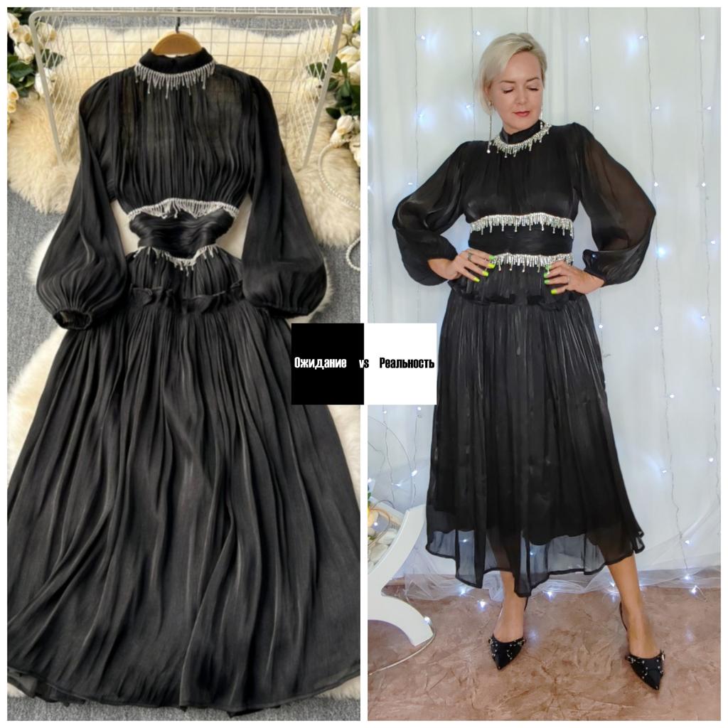 Сказки Шахерезады😍 Привет! Ну просто шикарное платье! Я такого ещё ни у кого не видела. Выглядит потрясающе и достойно настоящей королевы! ‼️Добавила разговорное видео, там больше деталей, посмотрите перед покупкой‼️ Ткань: Шифон с эффектом органы. Ткань не колется! Очень мягкая и приятная на ощупь, переливается при движении света. Внутри подкладка из ткани под атлас, только мягкая и очень приятная. Подкладка только в нижней части платья. Дизайн: Платье застегивается на потайную молнию она находится на спине. Крой платья достаточно интересный в дизайне используется используется и особенности ткани в её красивой драпировке и смотри я все это очень изыскано. Например на талии ткань разместили горизонтально собрав её особым образом. В качестве украшений используется бижутерия с камнями пришитая к шее и на талии. Размер: На мне XXL Мои параметры : рост 172 см 98/76/106 см 📏Детали: Длина 130 см Плечи 35 см Длина рукава 60 см ОГ до 102 см ОТ 86 см Резюмирую : Очень! Очень! Очень красивое платье! В 100000 раз смотрится круче чем на фото продавца. Я буду его редактировать 💯 Я не прощаюсь, M_K #восточные_сказки