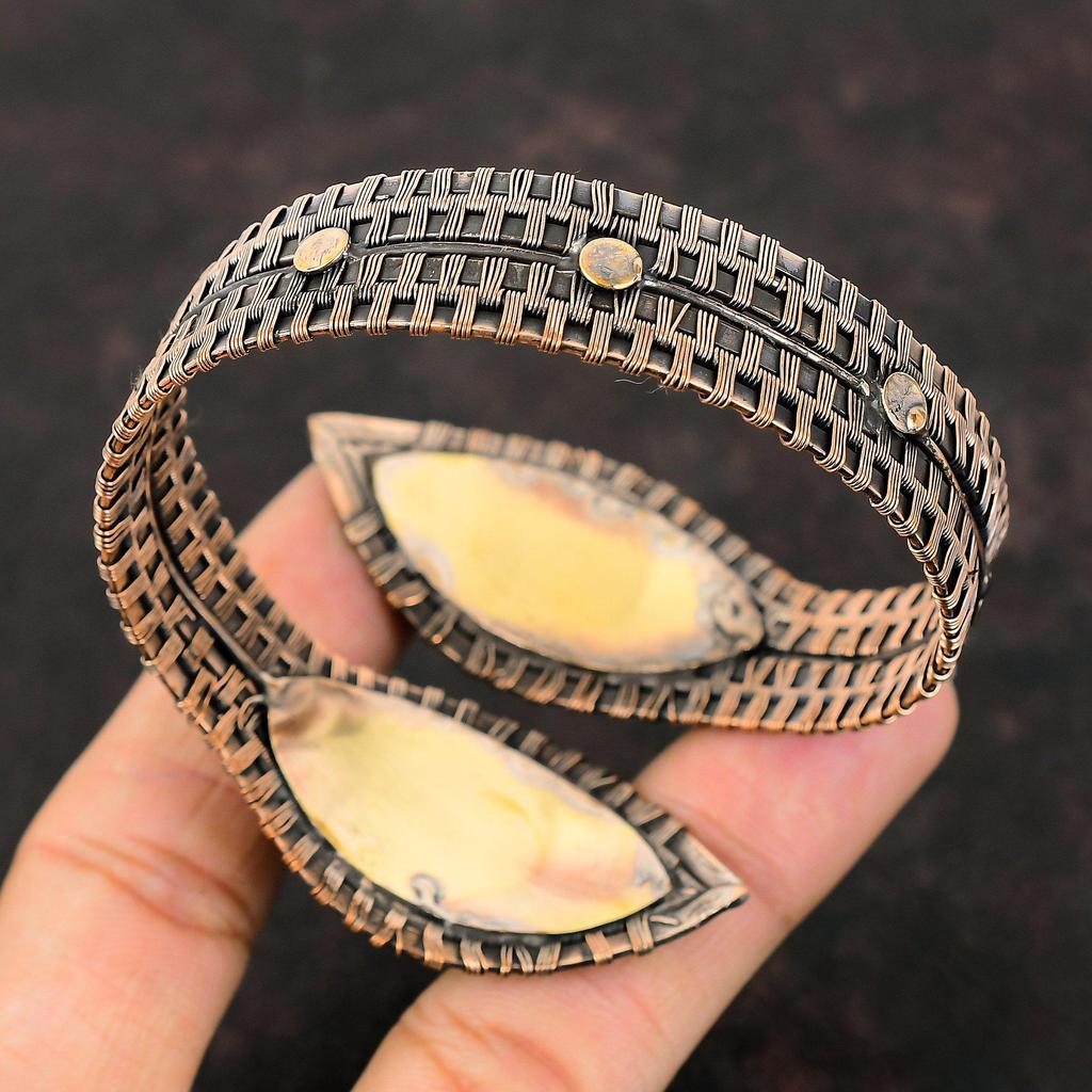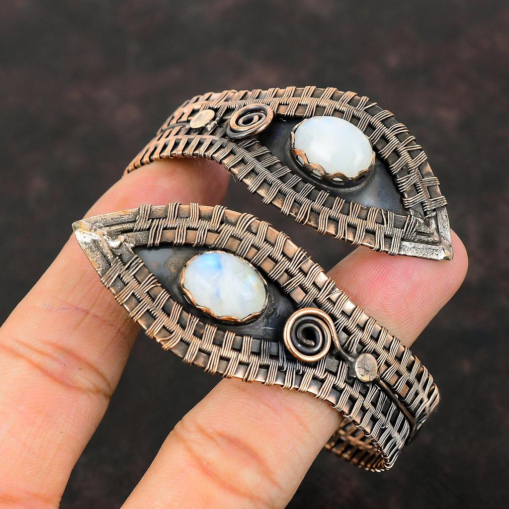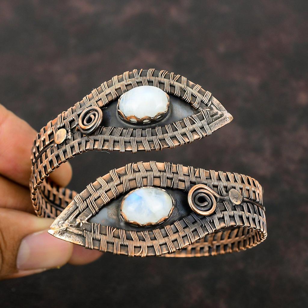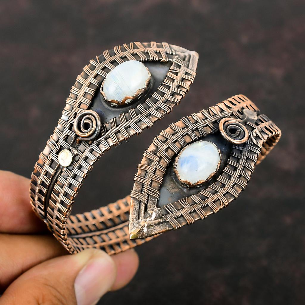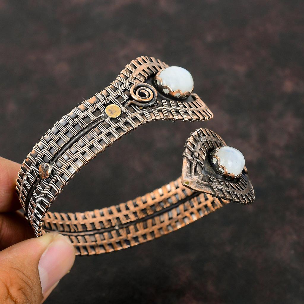 Радужный браслет-манжета из лунного камня, браслет из медной проволоки, ювелирные изделия из драгоценных камней, регулируемый браслет, браслет ручной работы, медные украшения, подарок для нее