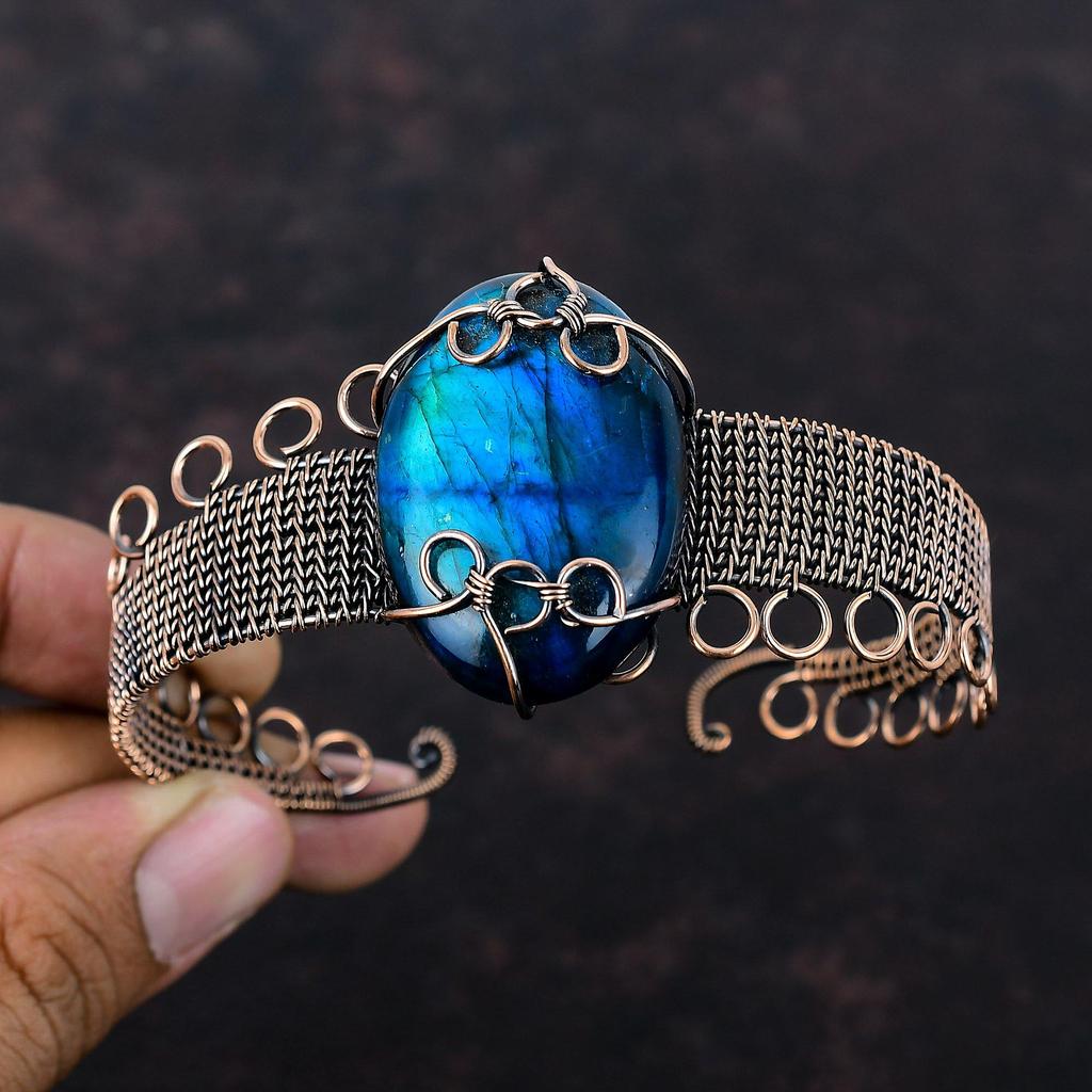 Неоновый браслет из лабрадорита с вспышкой, браслет из медной проволоки, регулируемый браслет-манжета, драгоценный камень, медные украшения, подарок для него, ювелирные изделия ручной работы из проволоки — купить товар онлайн с бесплатной доставкой по всему миру!