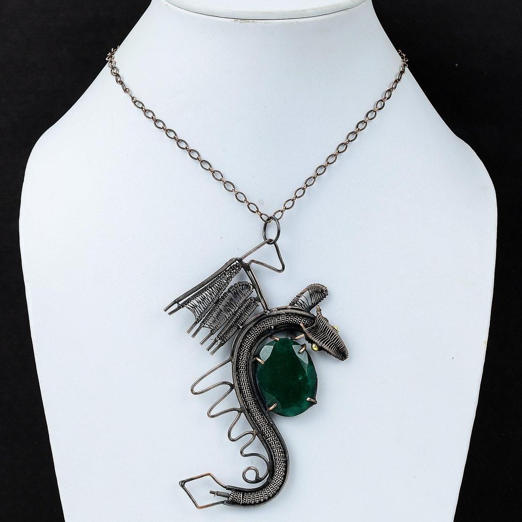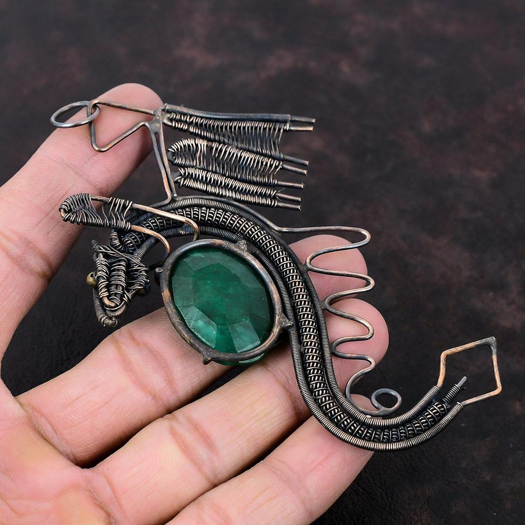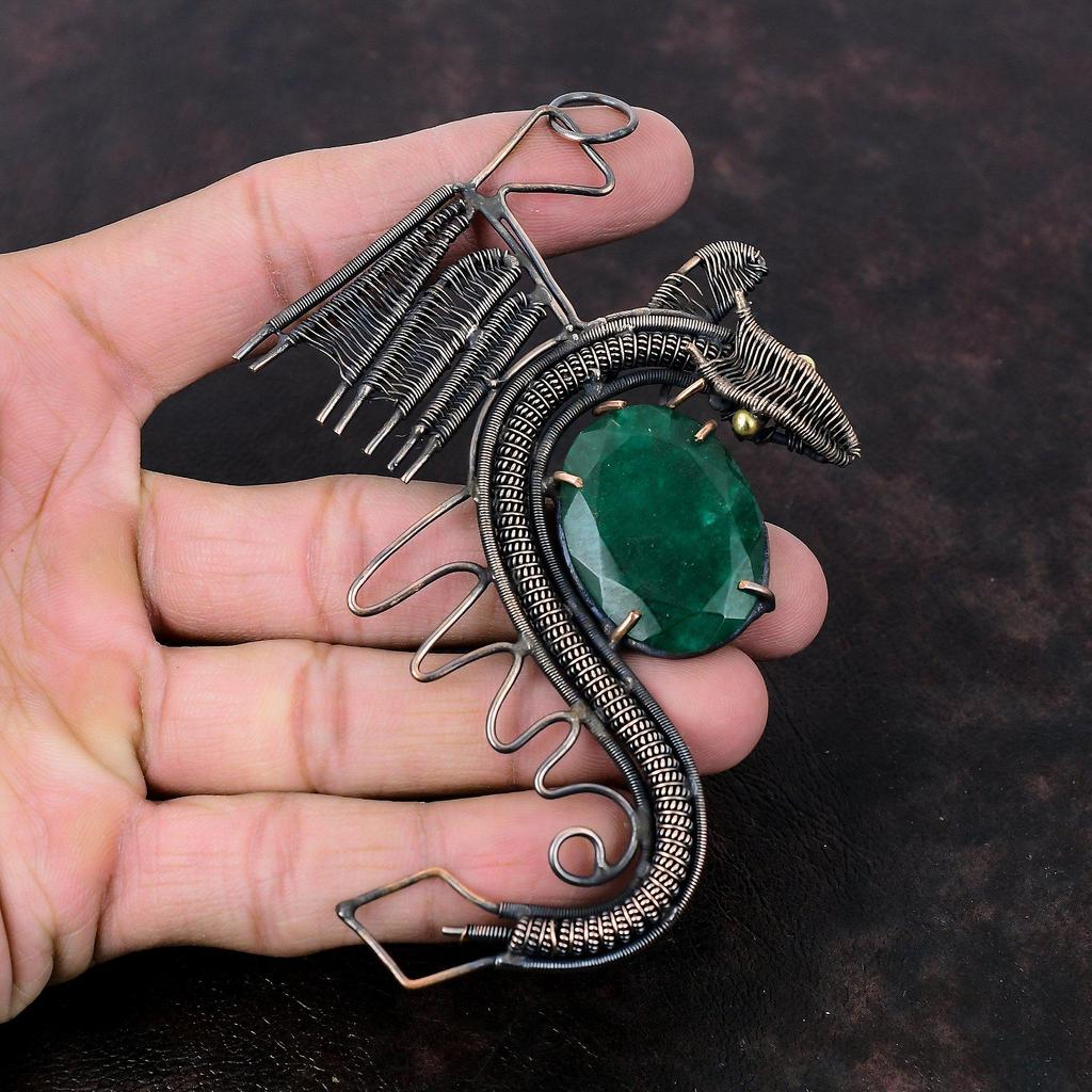 Ограненный замбийский изумрудный кулон, медная проволока, кулон, элегантные ювелирные изделия ручной работы, кулон с драконом, кулон с драгоценным камнем, медные украшения для подарка