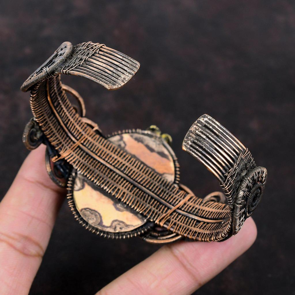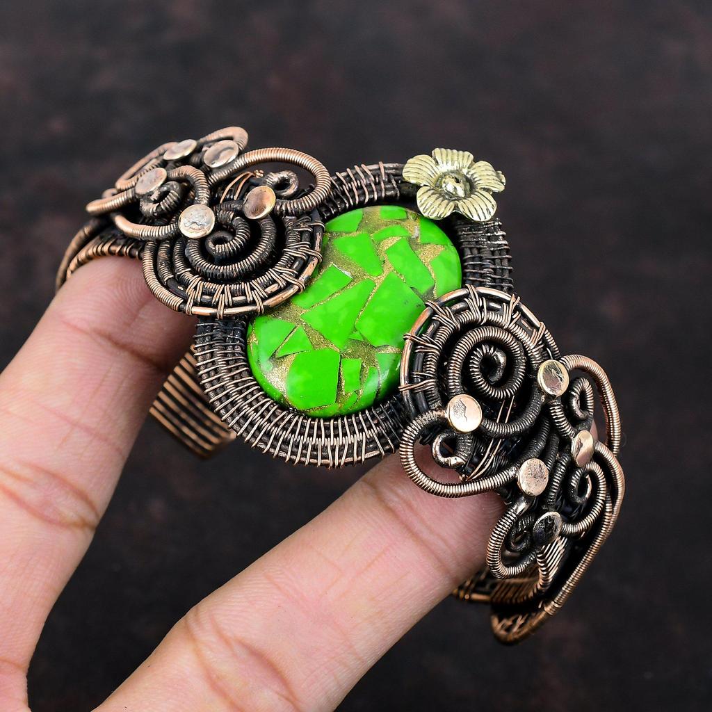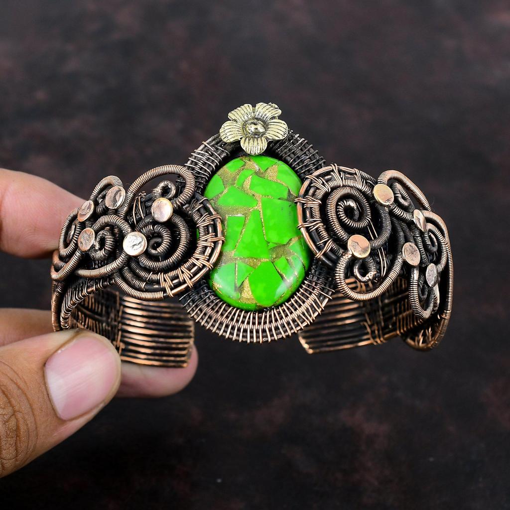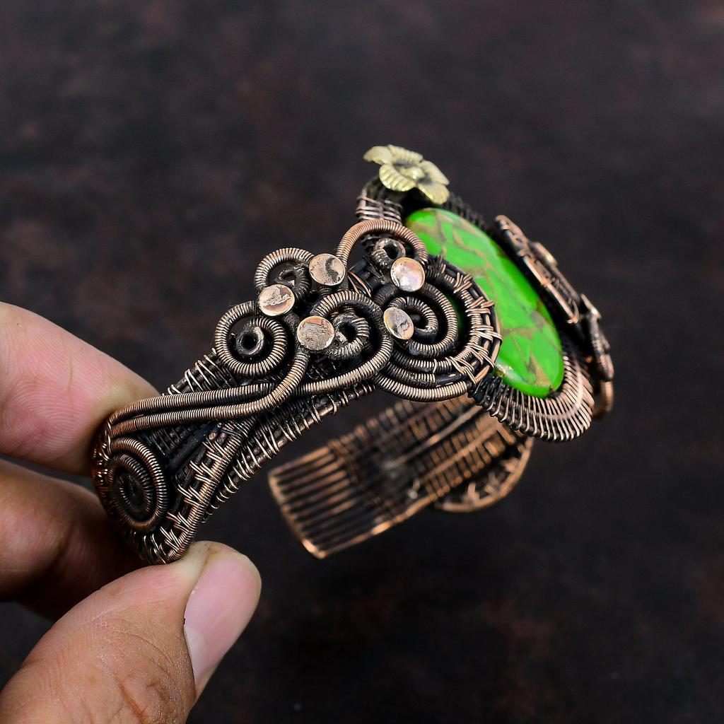 Медно-зеленый бирюзовый браслет-манжета Браслет из медной проволоки Регулируемый браслет ручной работы из натуральных драгоценных камней Ювелирные изделия Подарок для мамы Цветочная манжета