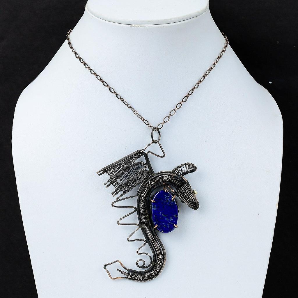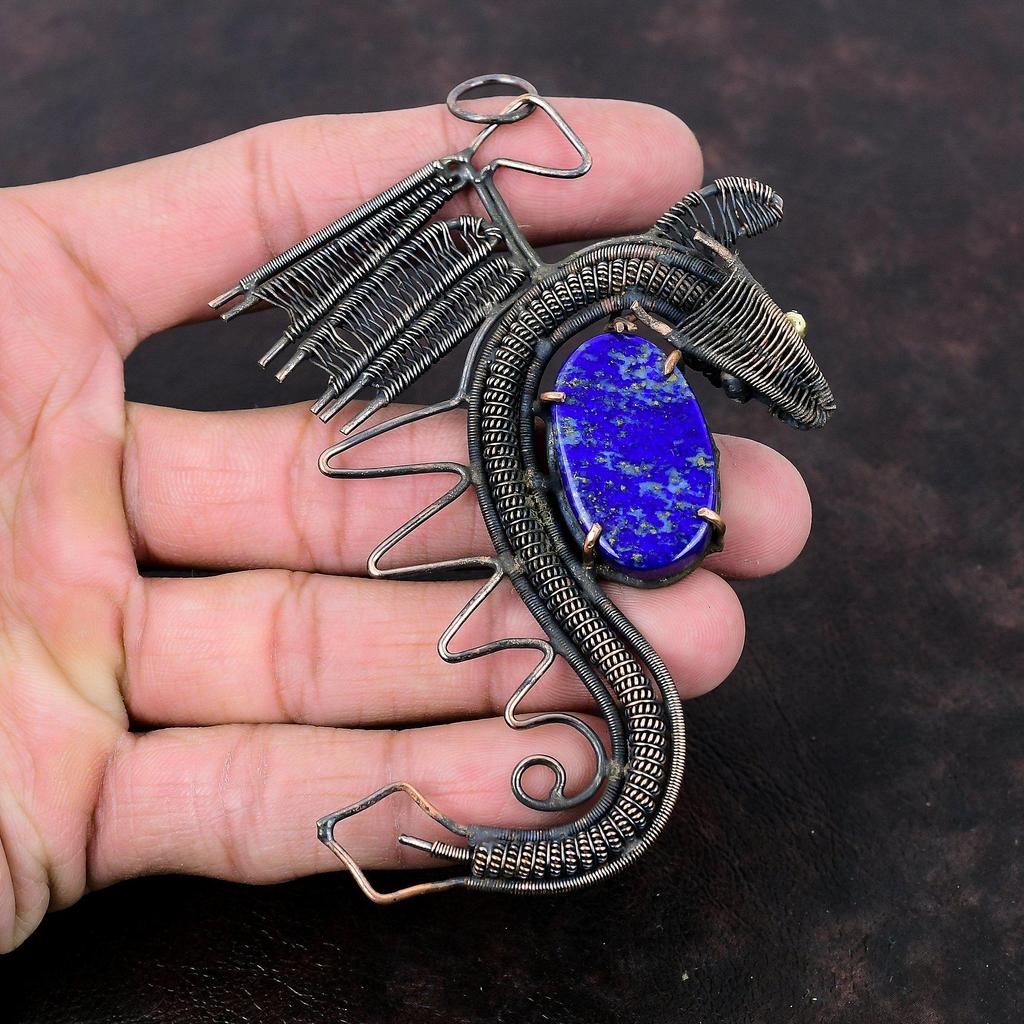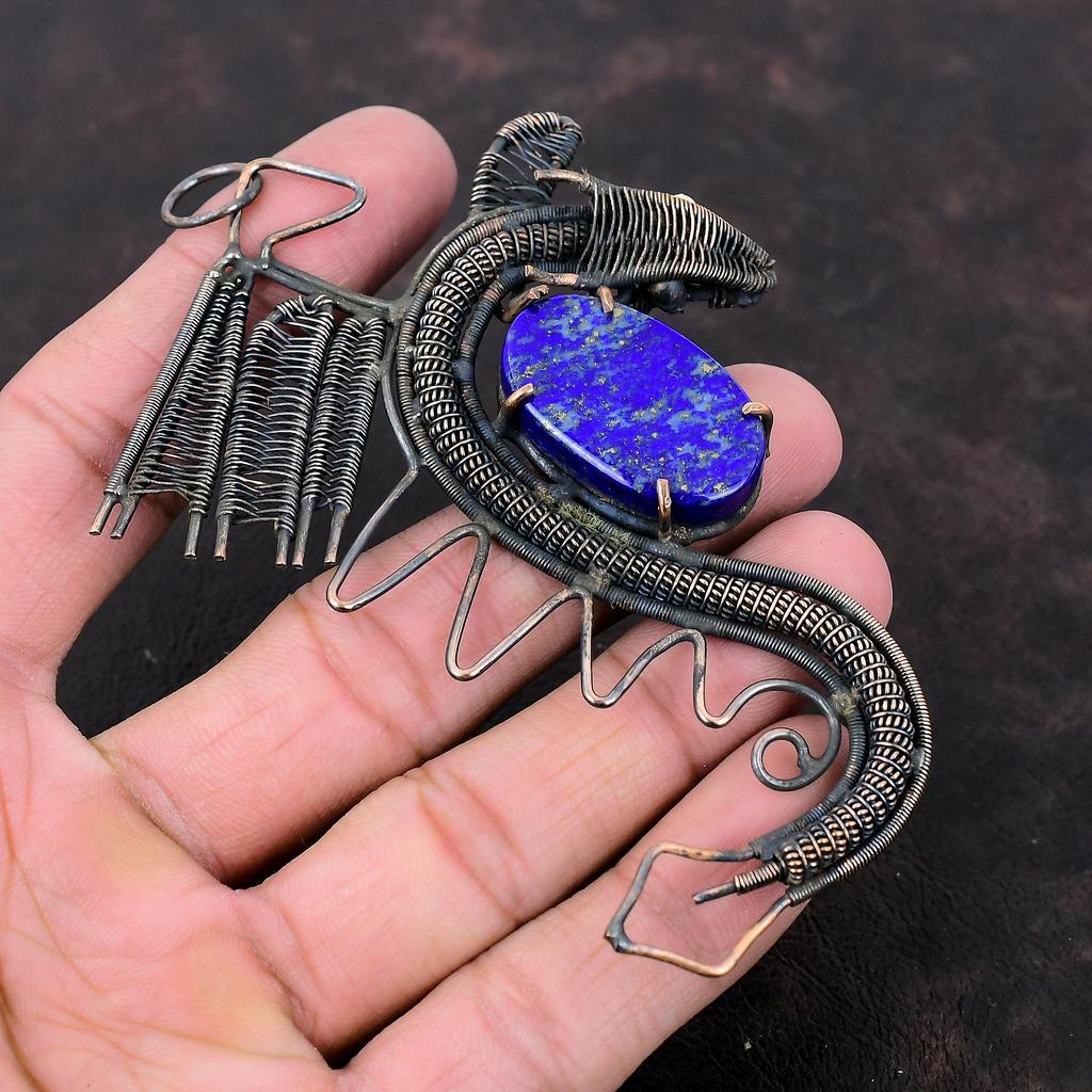 Кулон из лазурита, медная проволока, кулон, кулон ручной работы, драгоценный камень, медные украшения, кулон с драконом, подарок для него, ювелирные изделия из проволочной обмотки