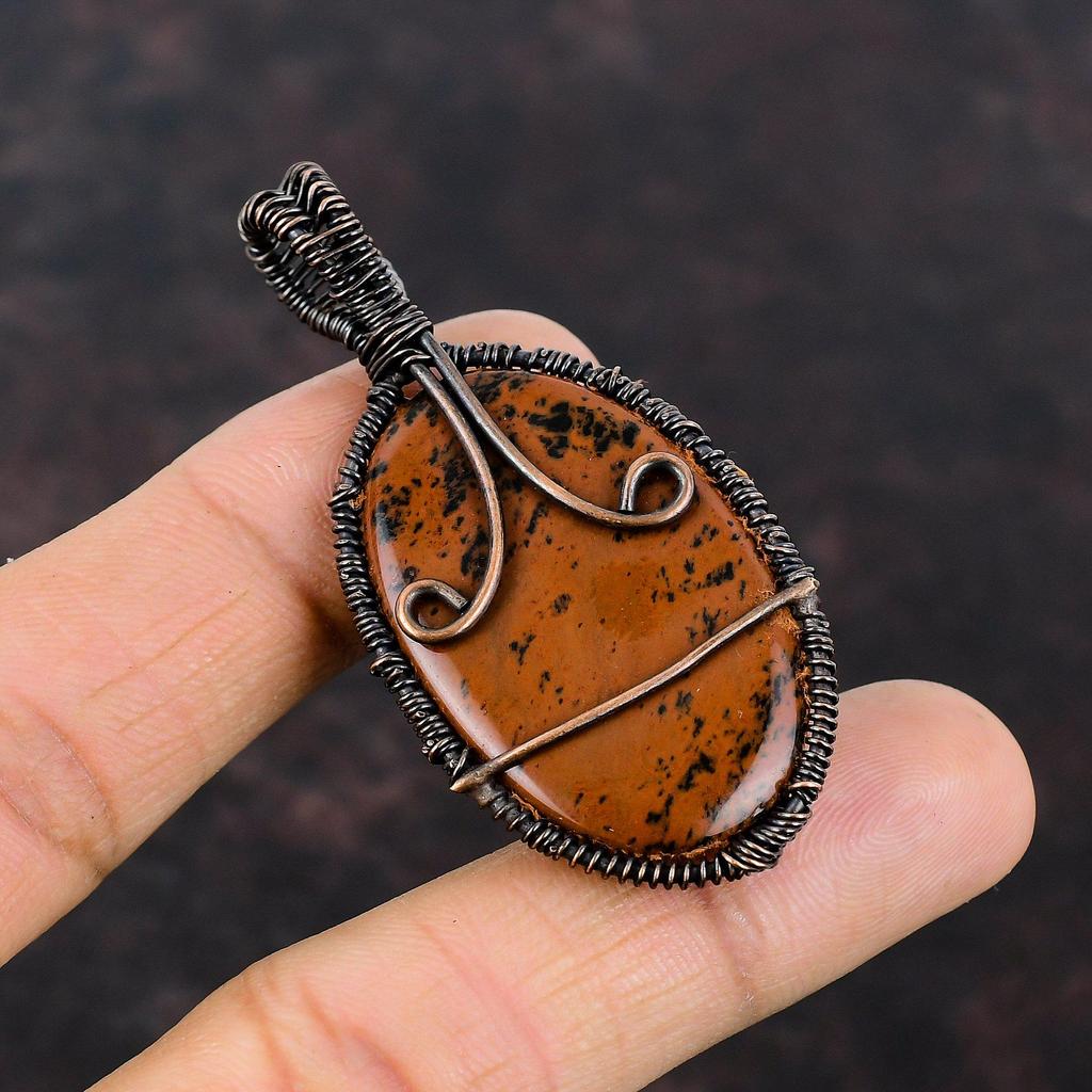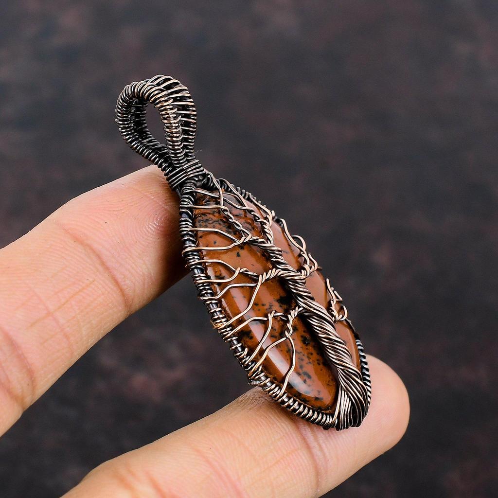 Древо Жизни Кулон из красного дерева и обсидиана Медная проволока Кулон Медные украшения Кулон ручной работы Кулон в проволочной обертке Ювелирные изделия из драгоценных камней для подарка