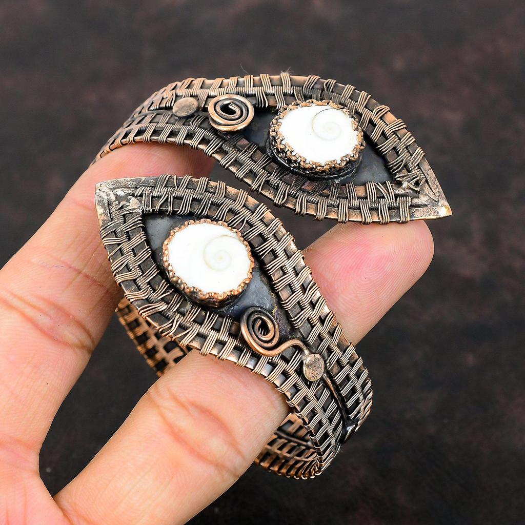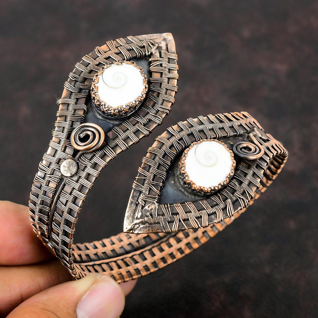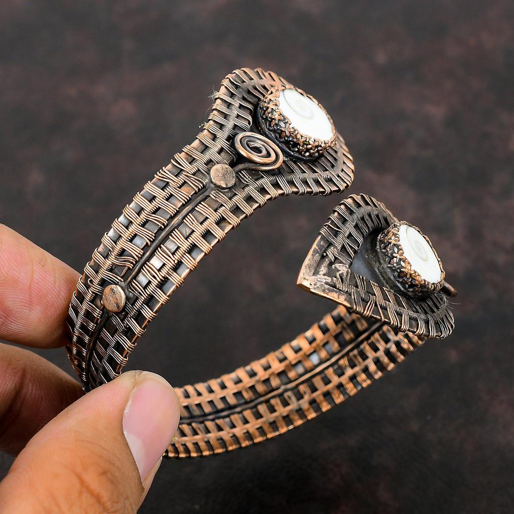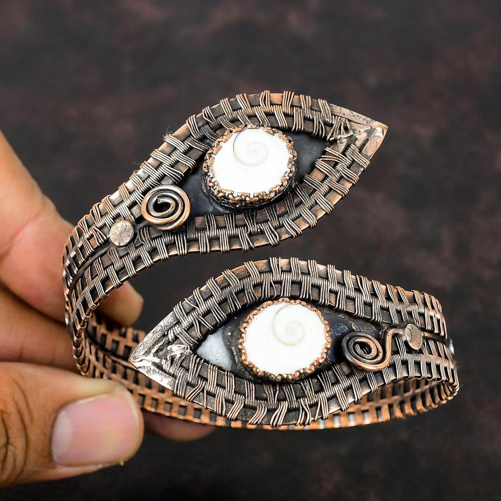 Браслет-манжета из ракушки глаза Шивы, драгоценный камень, браслет из медной проволоки, регулируемый браслет-манжета, браслет ручной работы, дизайнерские медные украшения, подарок на годовщину