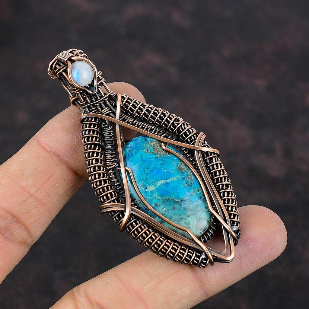 Подвеска из хризоколлы, медная проволока, обернутая подвеска, Радуга, подвеска из лунного камня, медная проволока, ювелирный подарок для него, подвеска из натурального драгоценного камня ручной работы