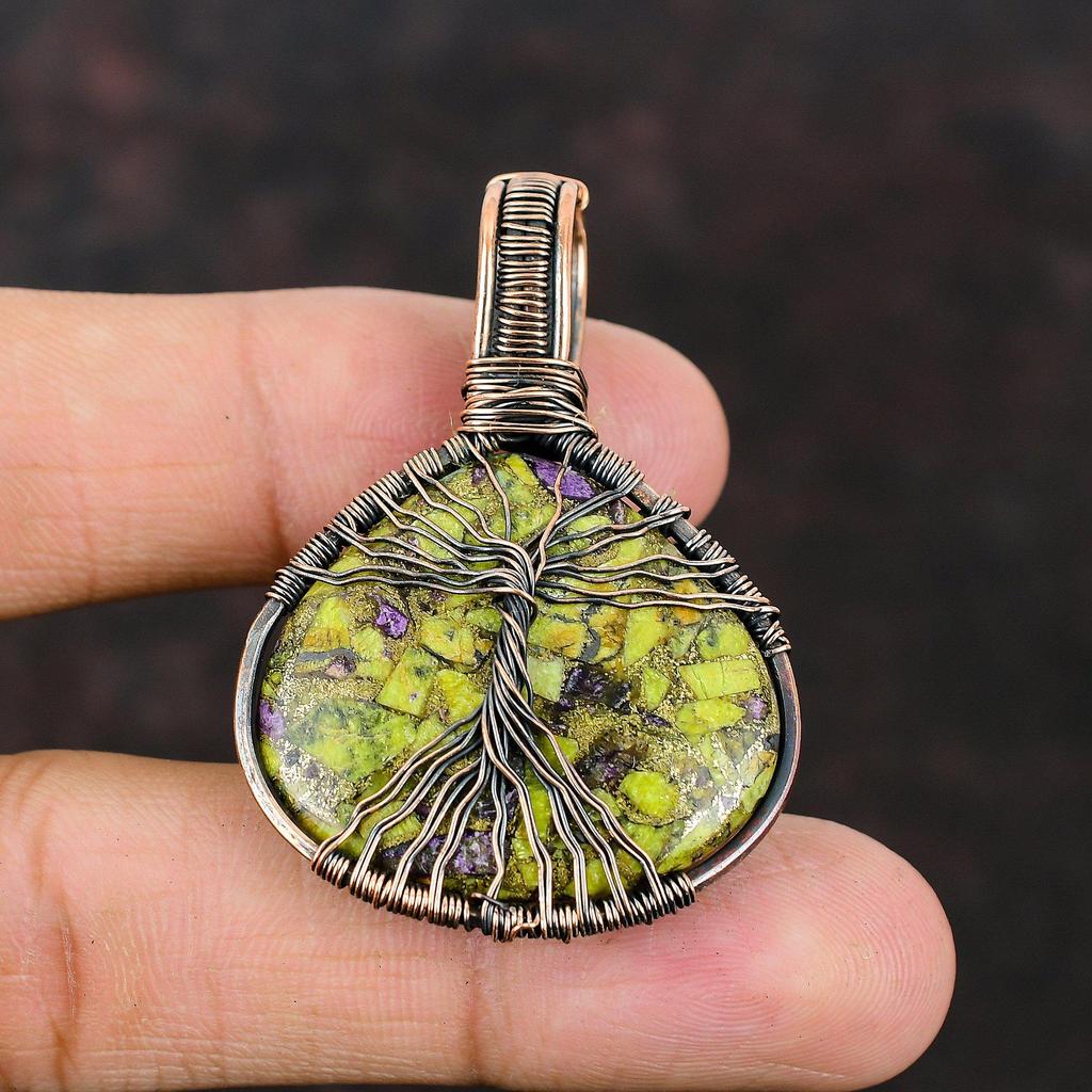 Подвеска с самоцветом стихтитом Древо Жизни, обмотанная медной проволокой, Медная проволочная подвеска, Медные проволочные украшения, Подарок для него, Подвеска ручной работы, Украшения Древо Жизни — купить товар онлайн с бесплатной доставкой по всему миру!