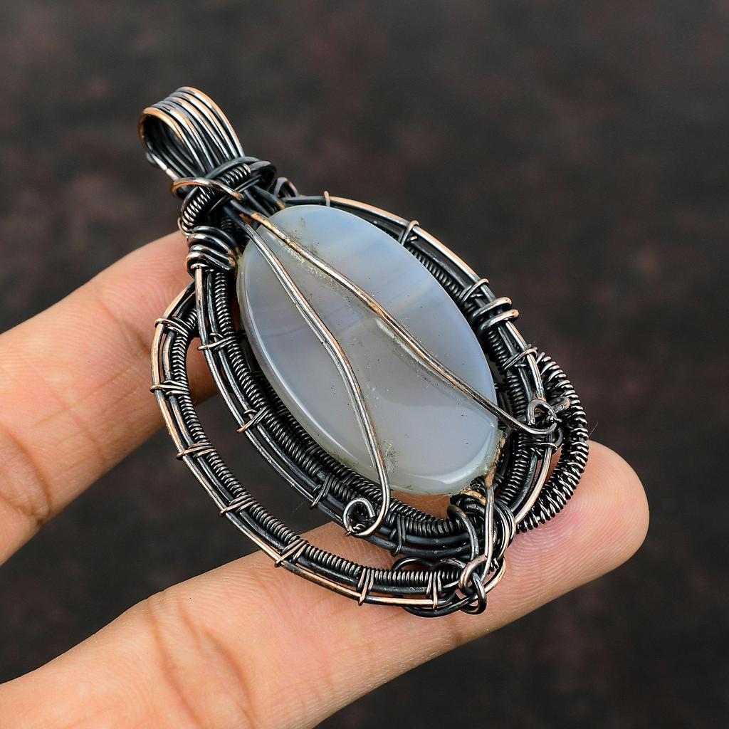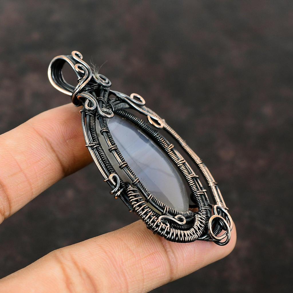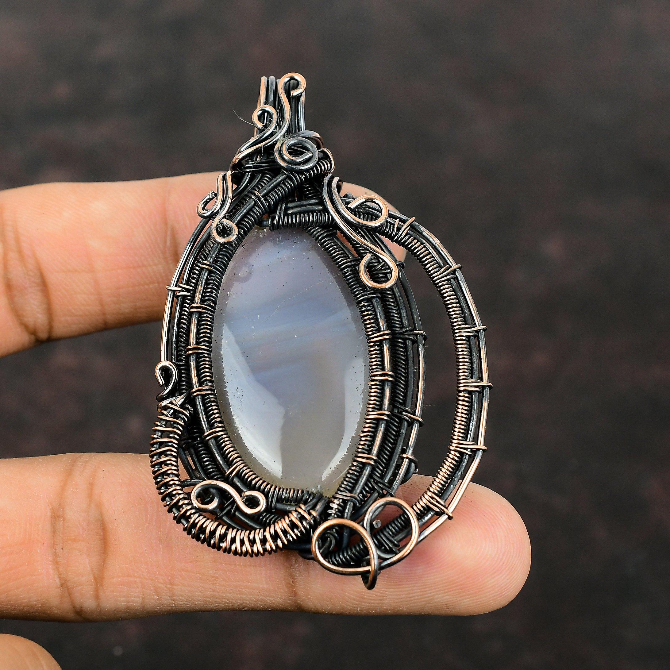 Кулон с агатом Монтана, кулон в медной проволоке, кулон ручной работы, ювелирные изделия с агатом Монтаны, изящный кулон с драгоценным камнем, медные ювелирные изделия, подарок для нее