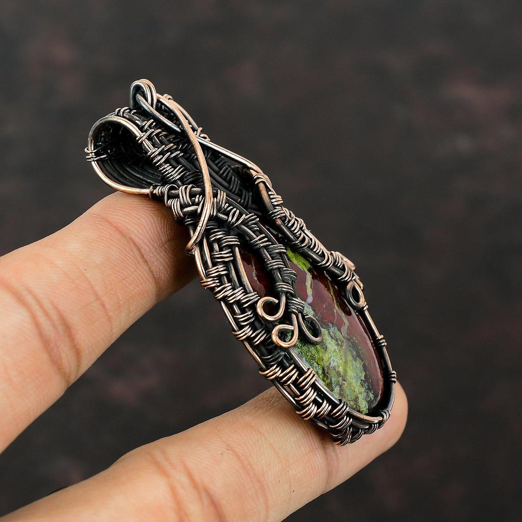 Кулон из кровавого камня дракона, кулон из медной проволоки, кулон ручной работы, кулон из драгоценного камня, медные украшения, кулон с камнем, подарок для нее, ювелирные изделия из проволоки