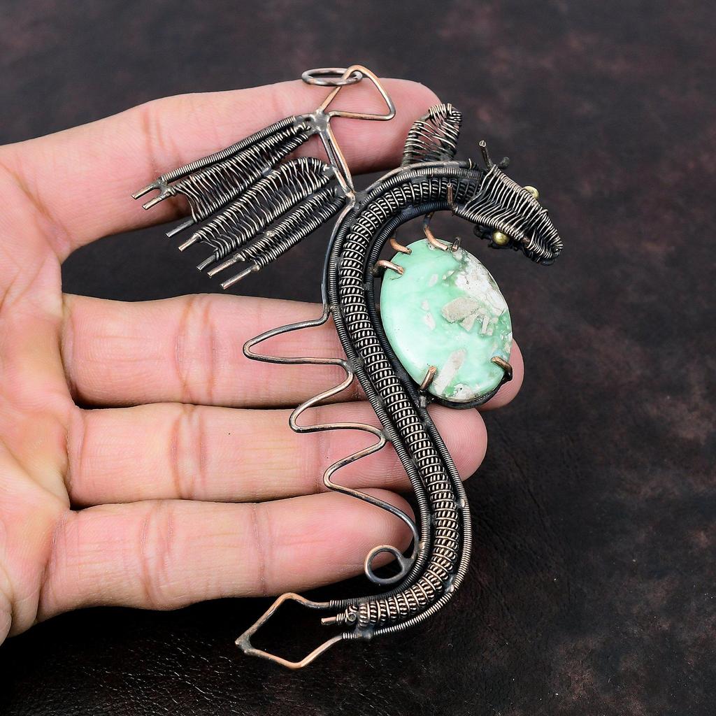 Кулон из варисцита, медная проволока, кулон в виде дракона, кулон ручной работы, ювелирные изделия из варисцита, кулон из натурального драгоценного камня, подарок для нее, медные украшения