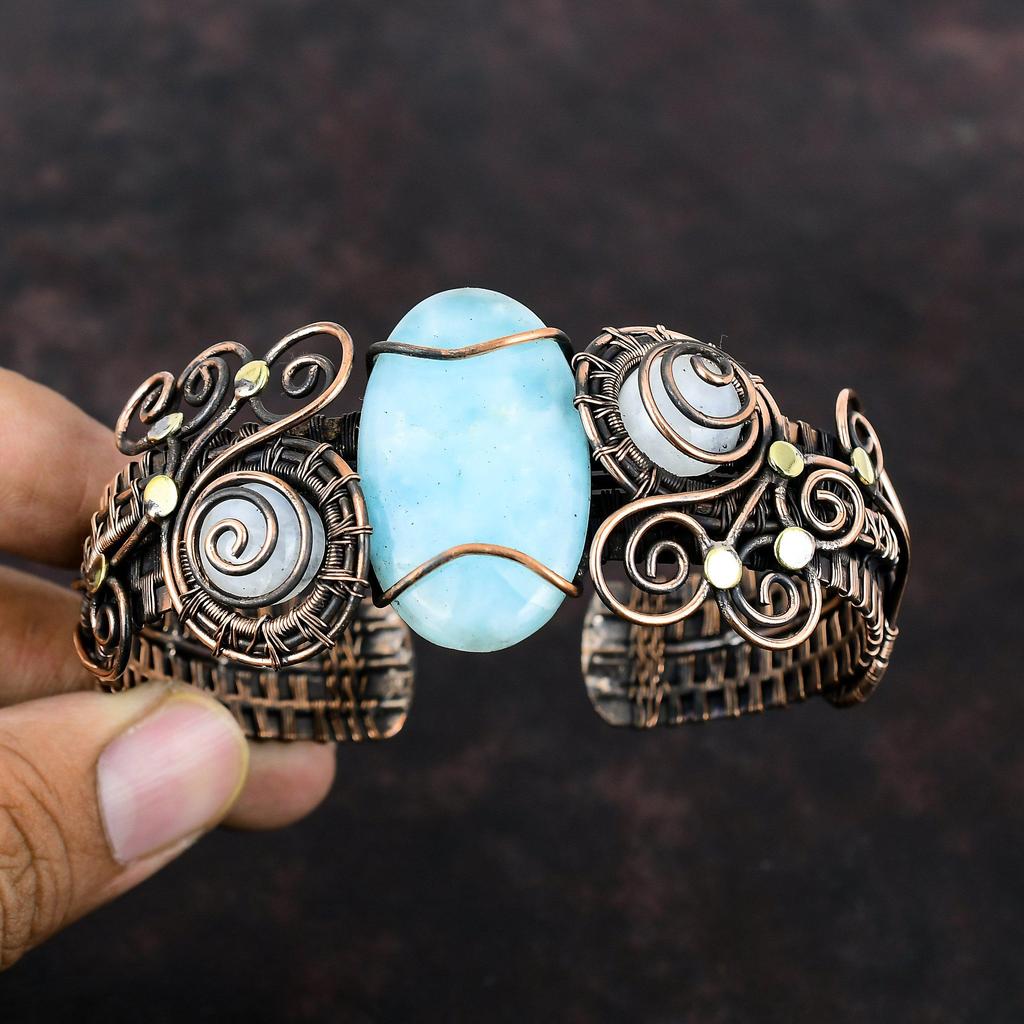 Браслет-манжета с гемиморфитом, браслет-манжета из медной проволоки, браслет-манжета из лунного камня, ювелирные изделия из драгоценных камней, регулируемый браслет ручной работы, подарки на годовщину — купить товар онлайн с бесплатной доставкой по всему миру!
