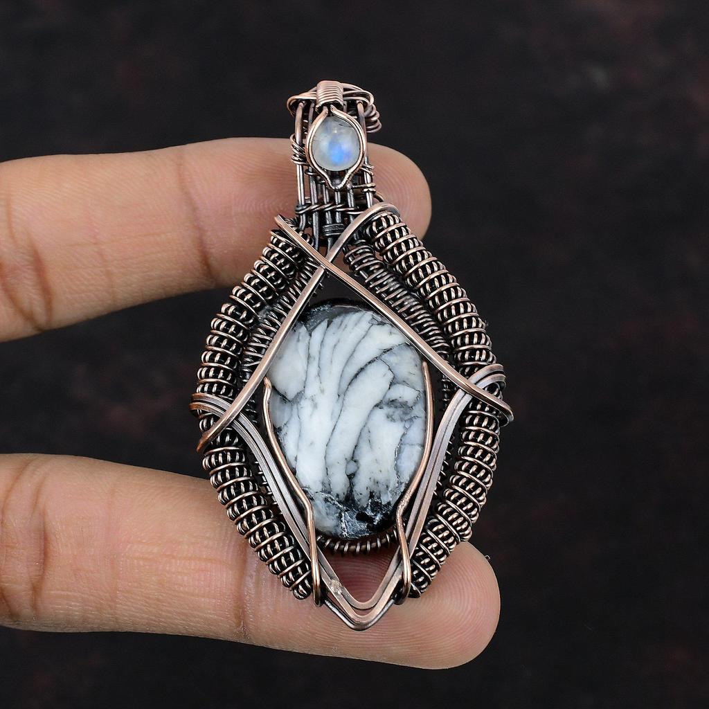 Подвеска из пинолита с яшмой, медная проволока, обернутая драгоценным камнем, подвеска ручной работы, Радуга, лунный камень, ювелирное изделие, подарок для нее, обертывание проволоки, ювелирные изделия из камня