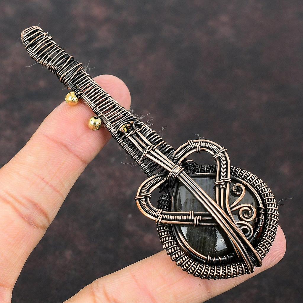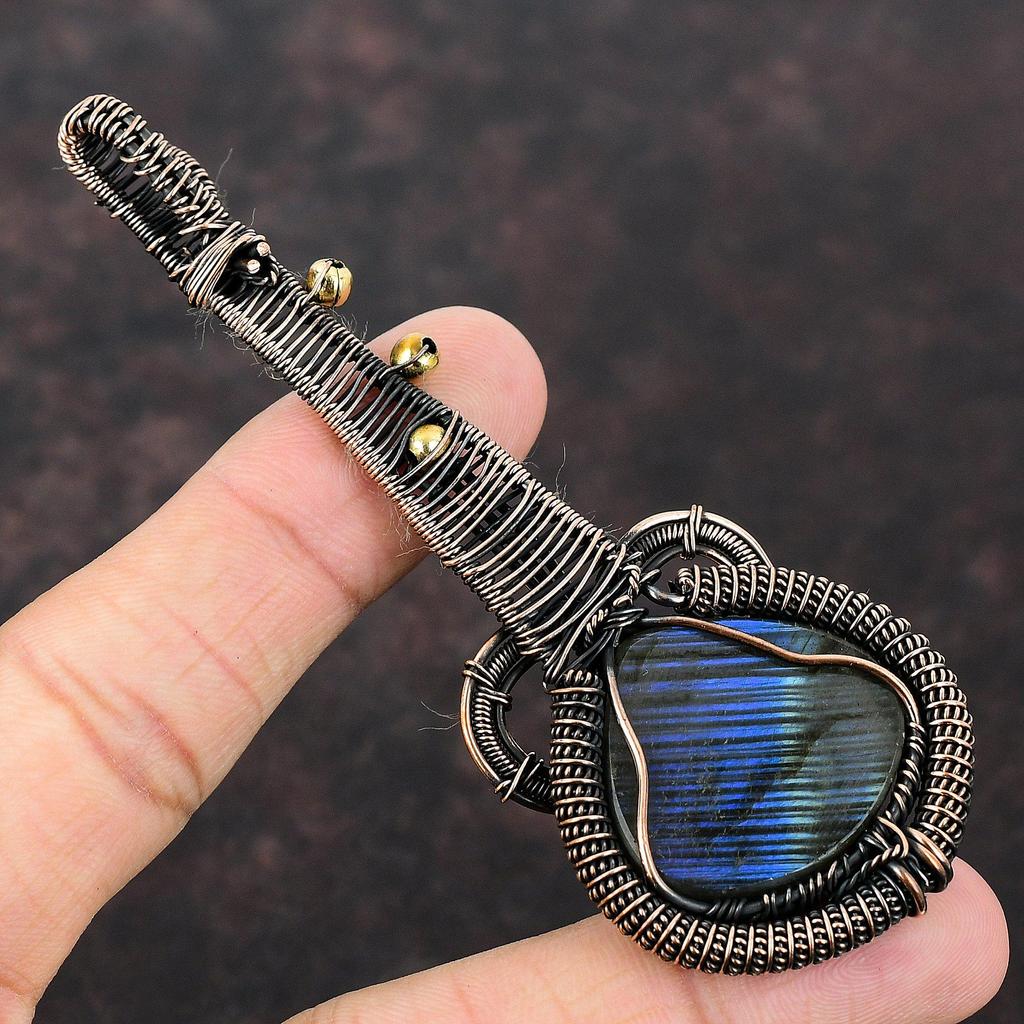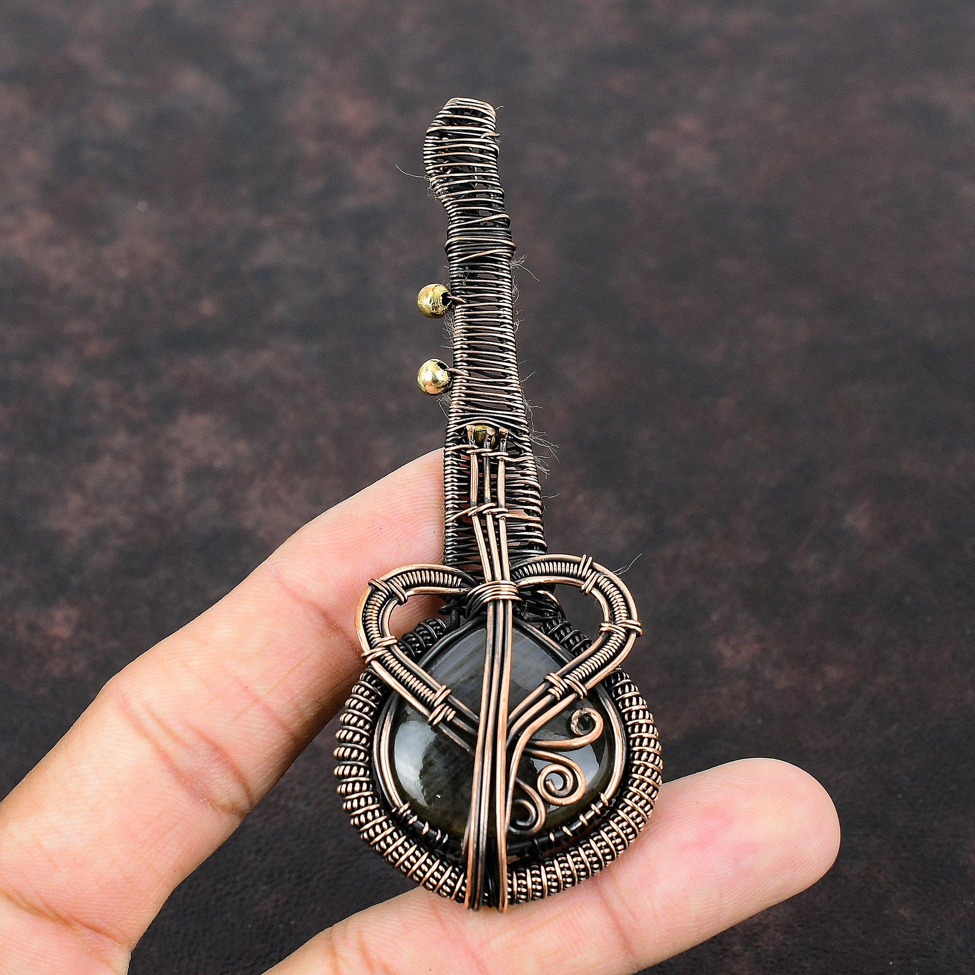Лабрадорит Подвеска Подвеска, обернутая медной проволокой Подвеска ручной работы Ювелирные изделия из драгоценных камней Подвеска в виде гитары Ювелирные изделия из медной проволоки Подарок для нее Матери