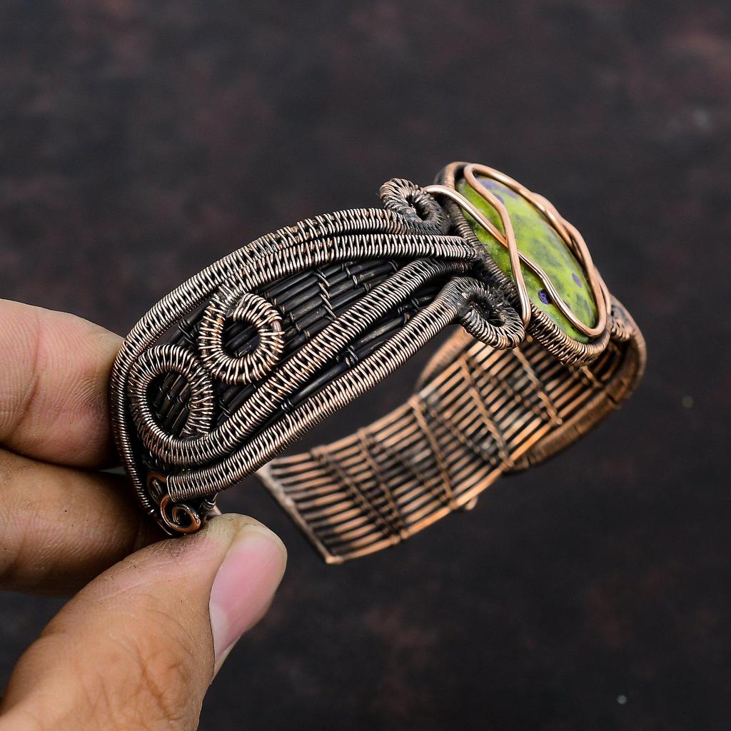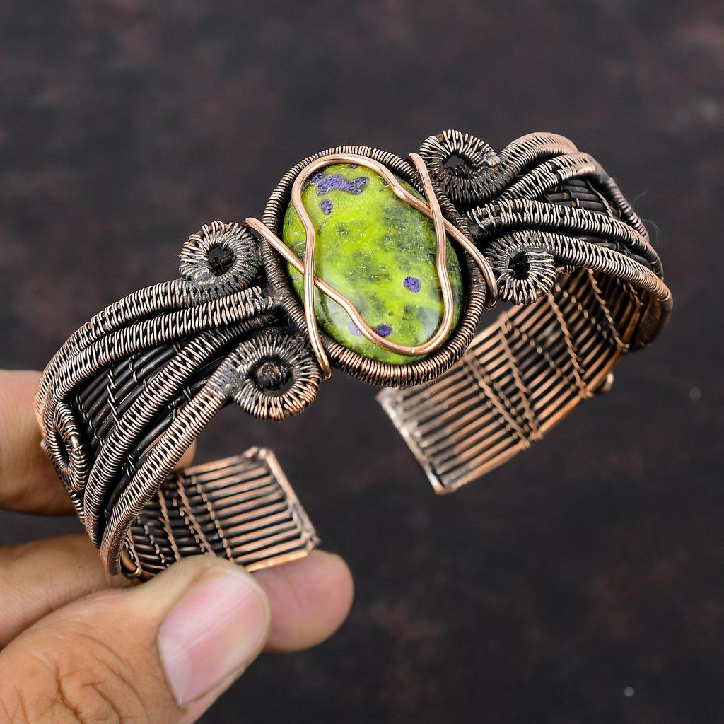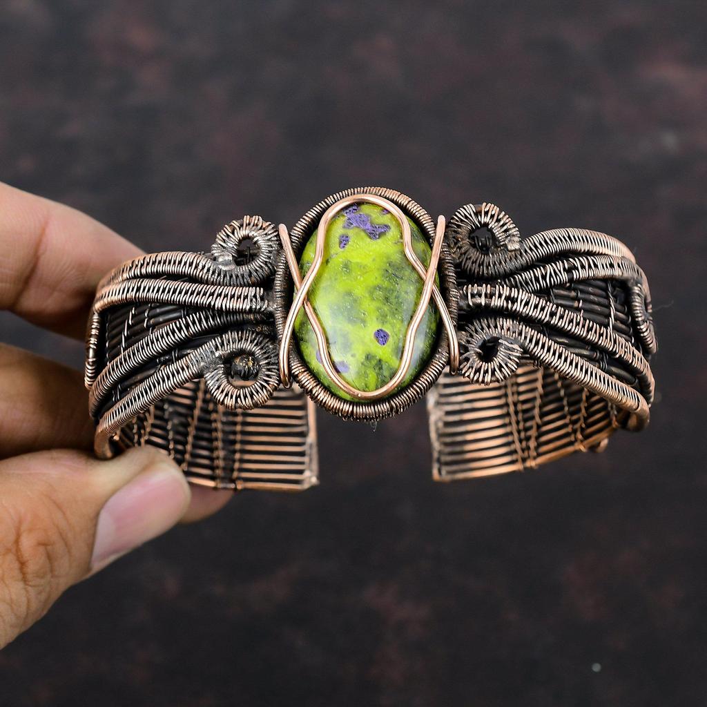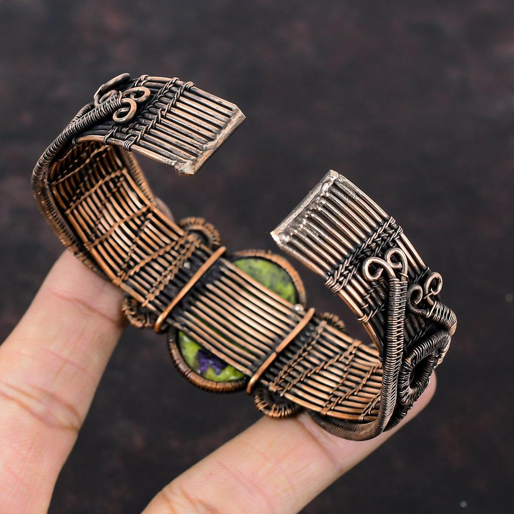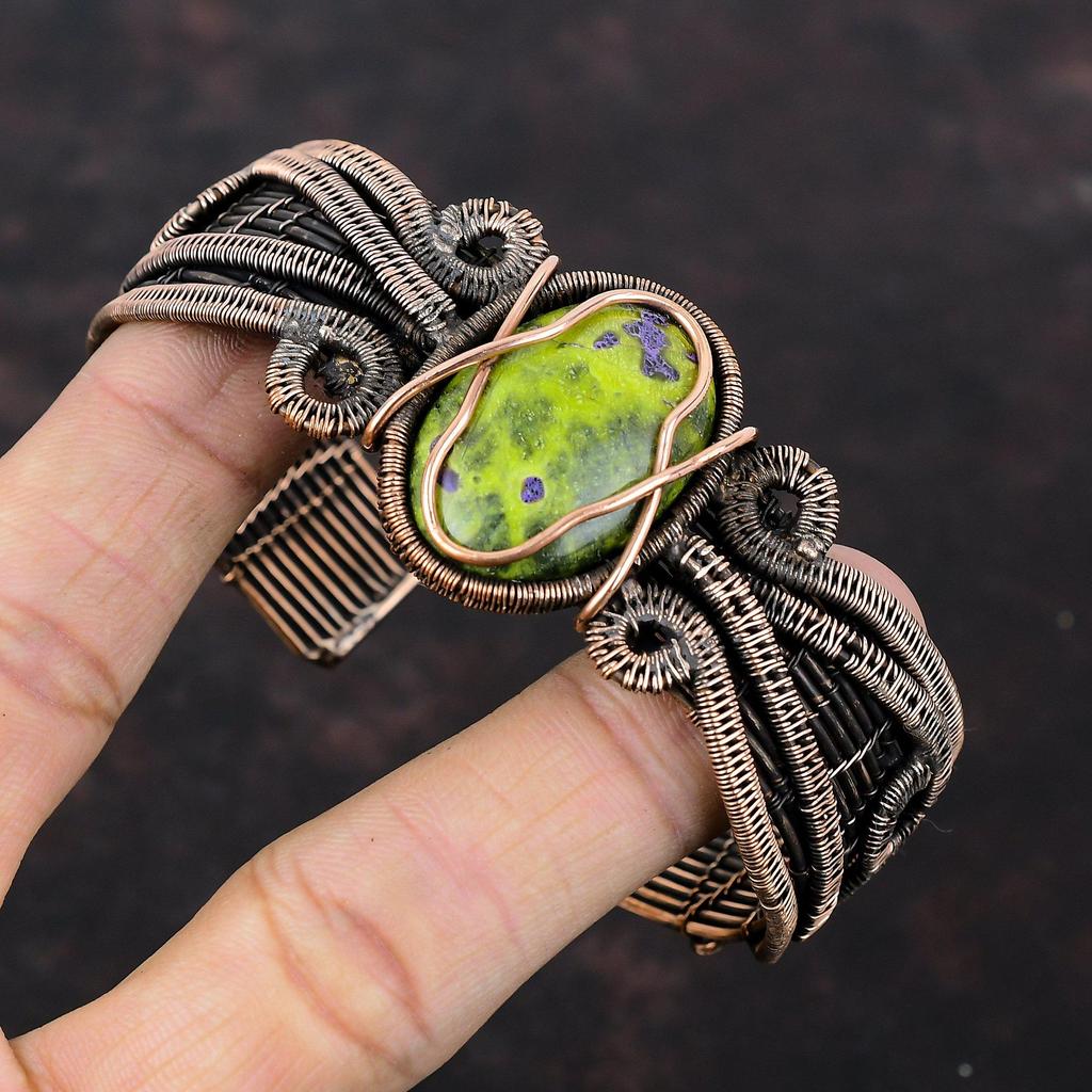 Стихтит Браслет-манжета Браслет-манжета из медной проволоки Регулируемый браслет ручной работы Браслет-манжета из драгоценного камня Изящный медный ювелирный браслет для женщин