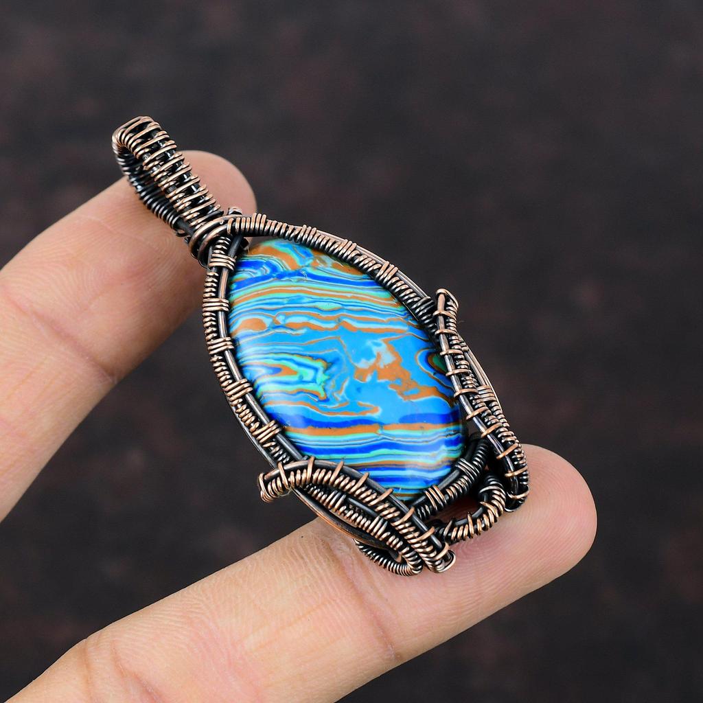 Подвеска из Радужного Кальцита, обернутая медной проволокой, Антикварное украшение, Подвеска с драгоценным камнем, Подвеска ручной работы, Удивительное медное украшение, Подарок для него