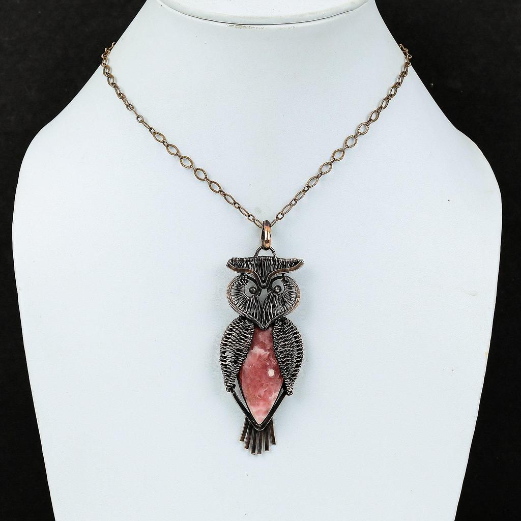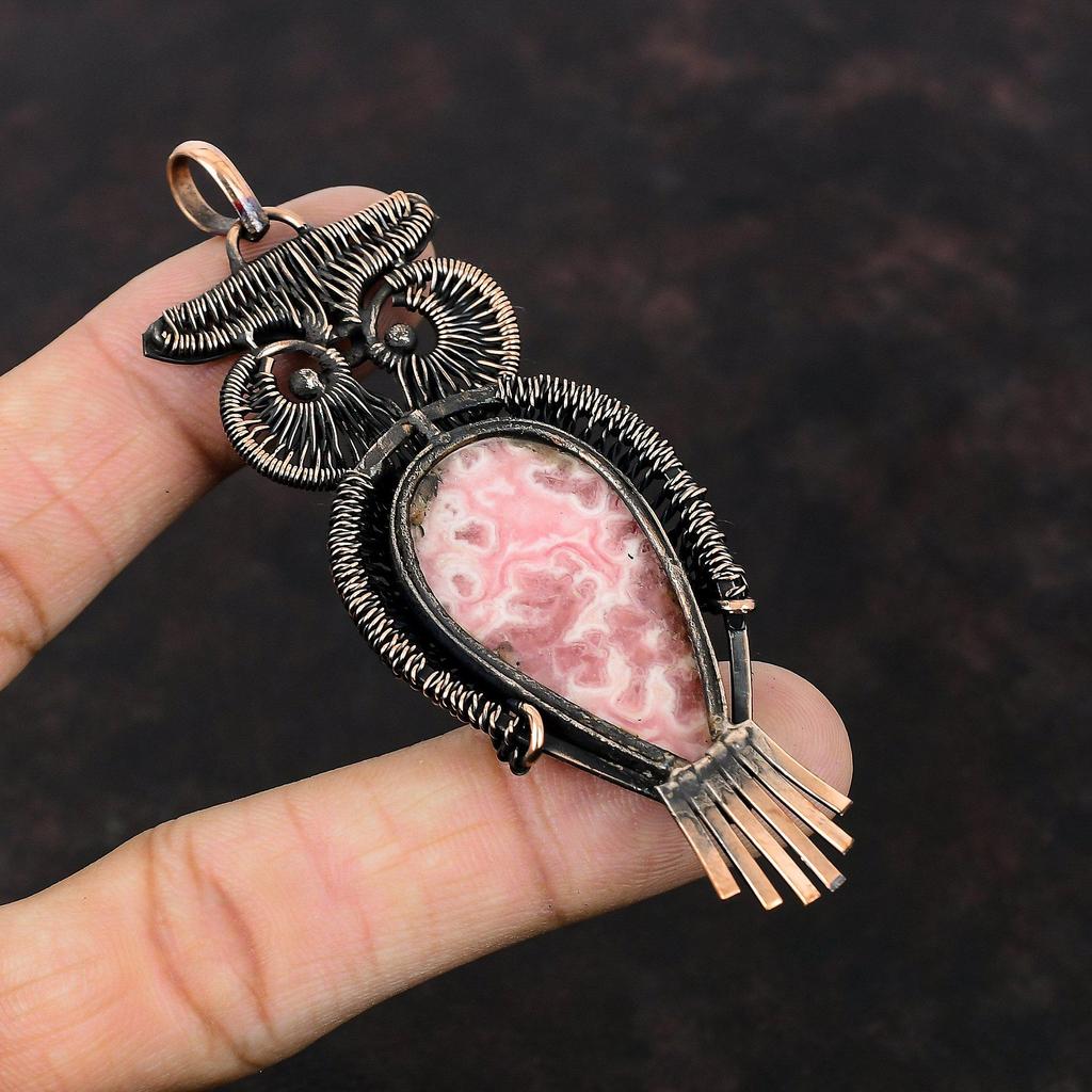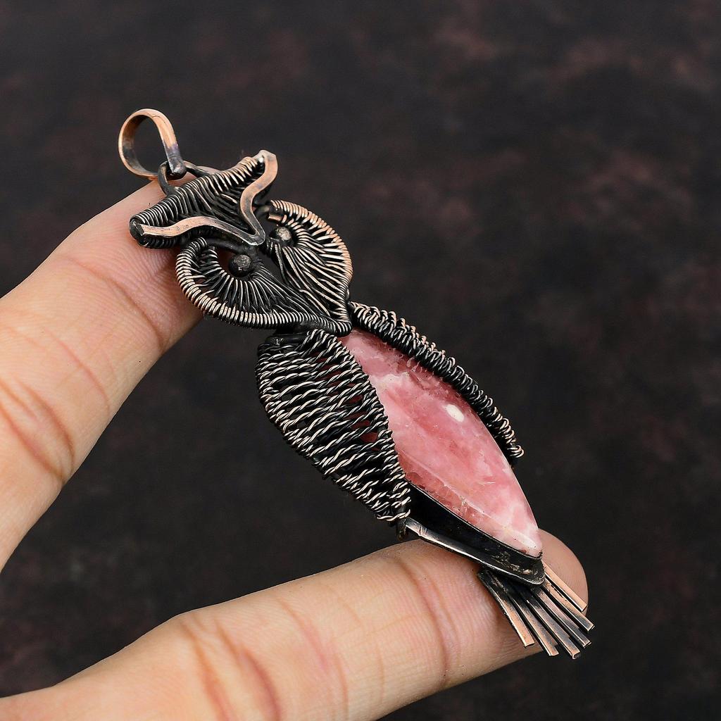 Подвеска из родохрозита, обернутая медной проволокой, подвеска из драгоценного камня, антикварная подвеска, медные украшения, потрясающая подвеска в виде совы, подарок для мамы, украшения ручной работы
