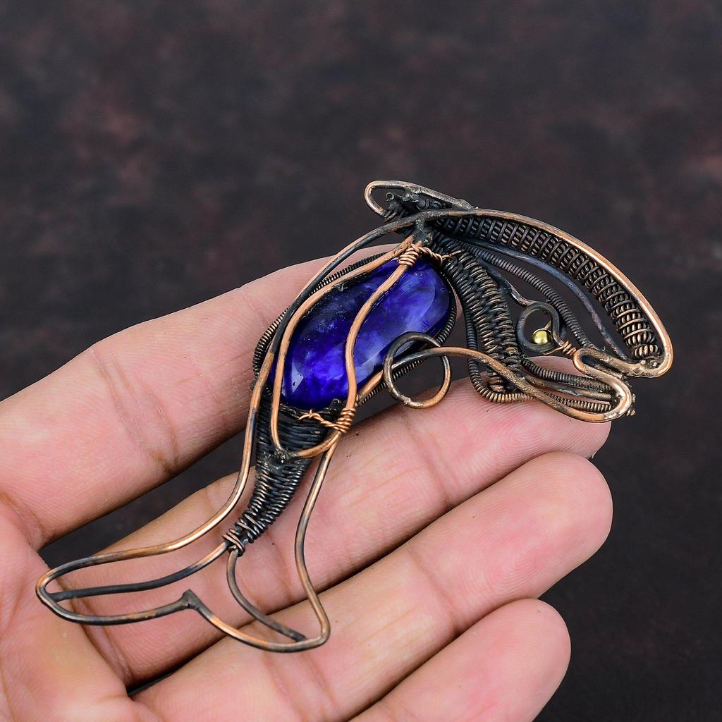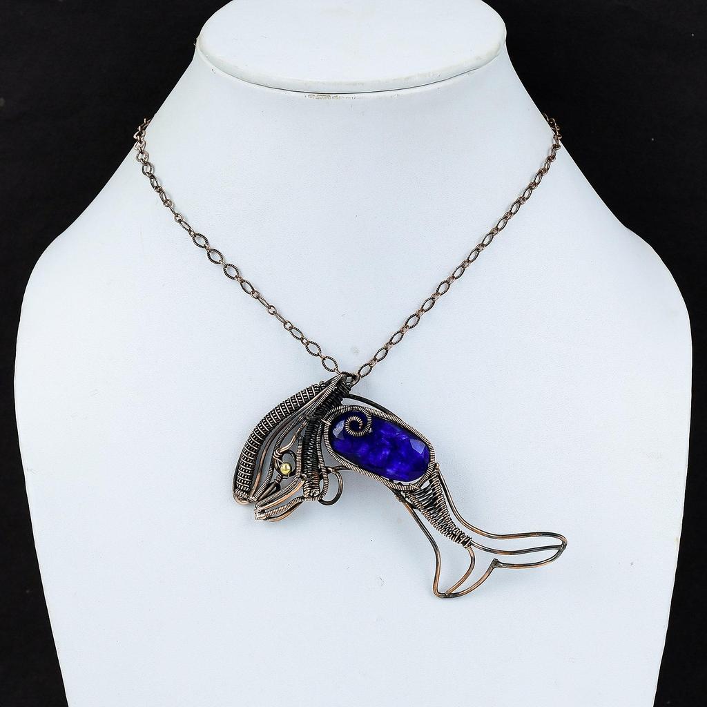Faceted Blue Sapphire Pendant Copper Wire Wrapped Pendant Handmade Fish Pendant Copper Wire Wrap Jewelry Gemstone Pendant Anniversary Gifts