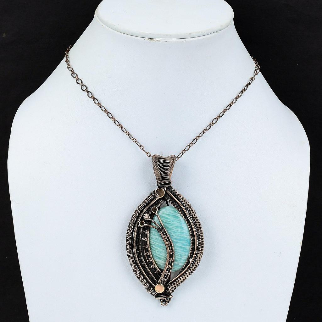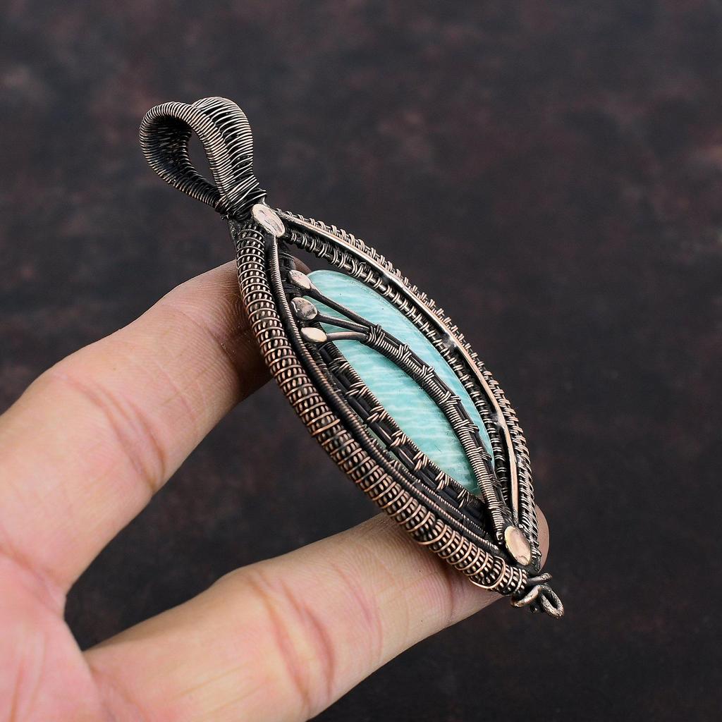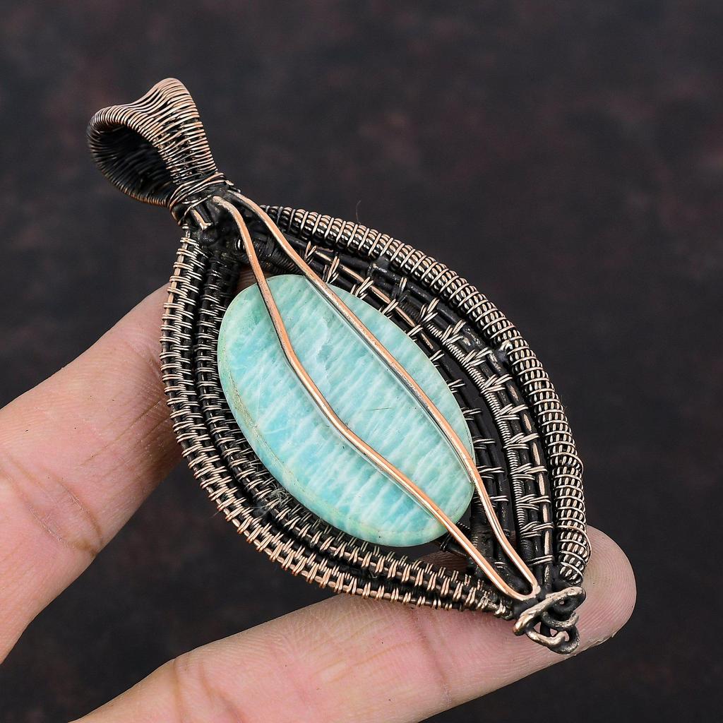 Подвеска из амазонита, обернутая медной проволокой, Подвеска из натурального драгоценного камня, Медные украшения, Подвеска ручной работы, Свадебный подарок, Украшения из амазонита