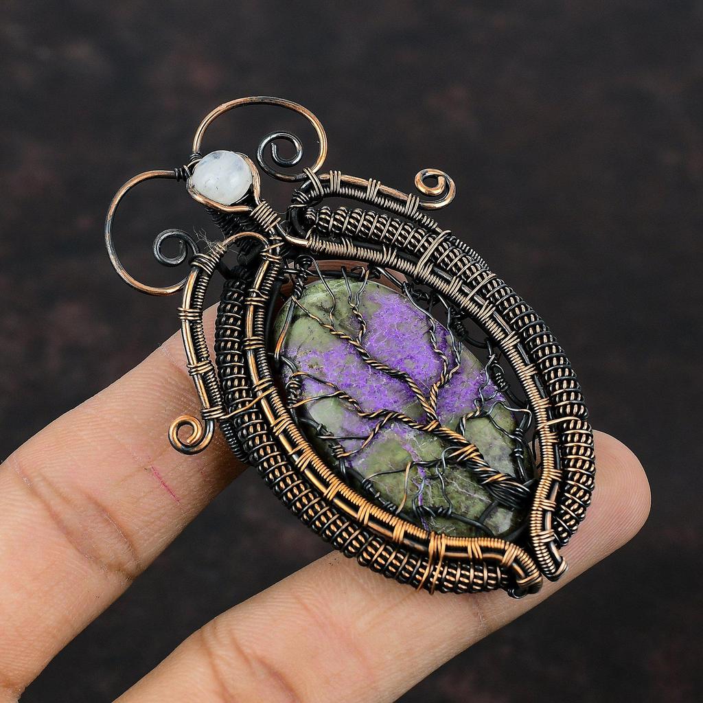 Древо жизни пурпуритовый кулон медная проволока обернутая ювелирные изделия радужная лунная подвеска ручная работа медная проволока подвеска драгоценный камень для подарка