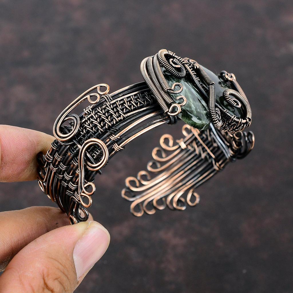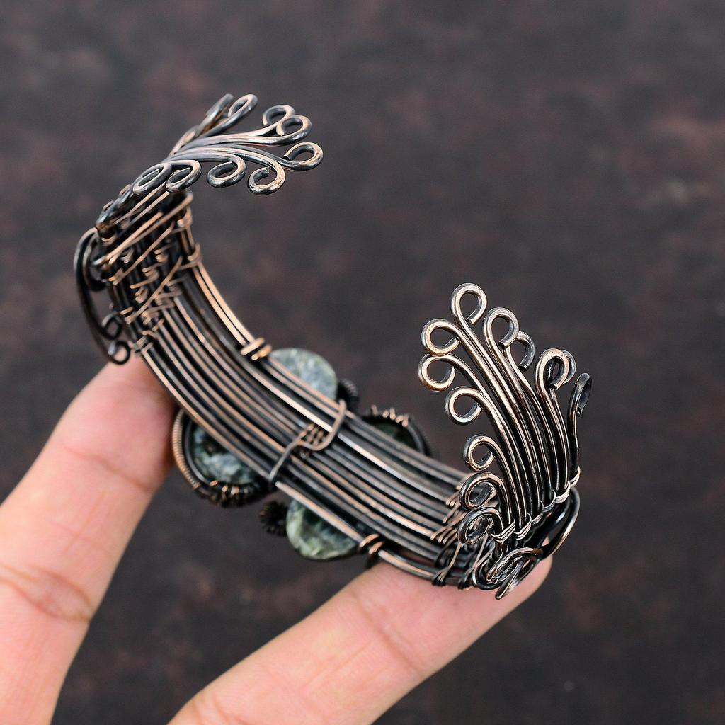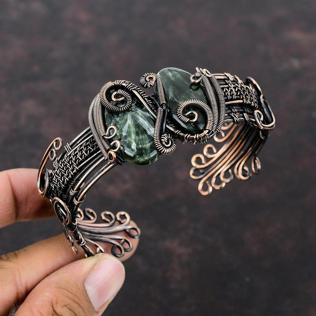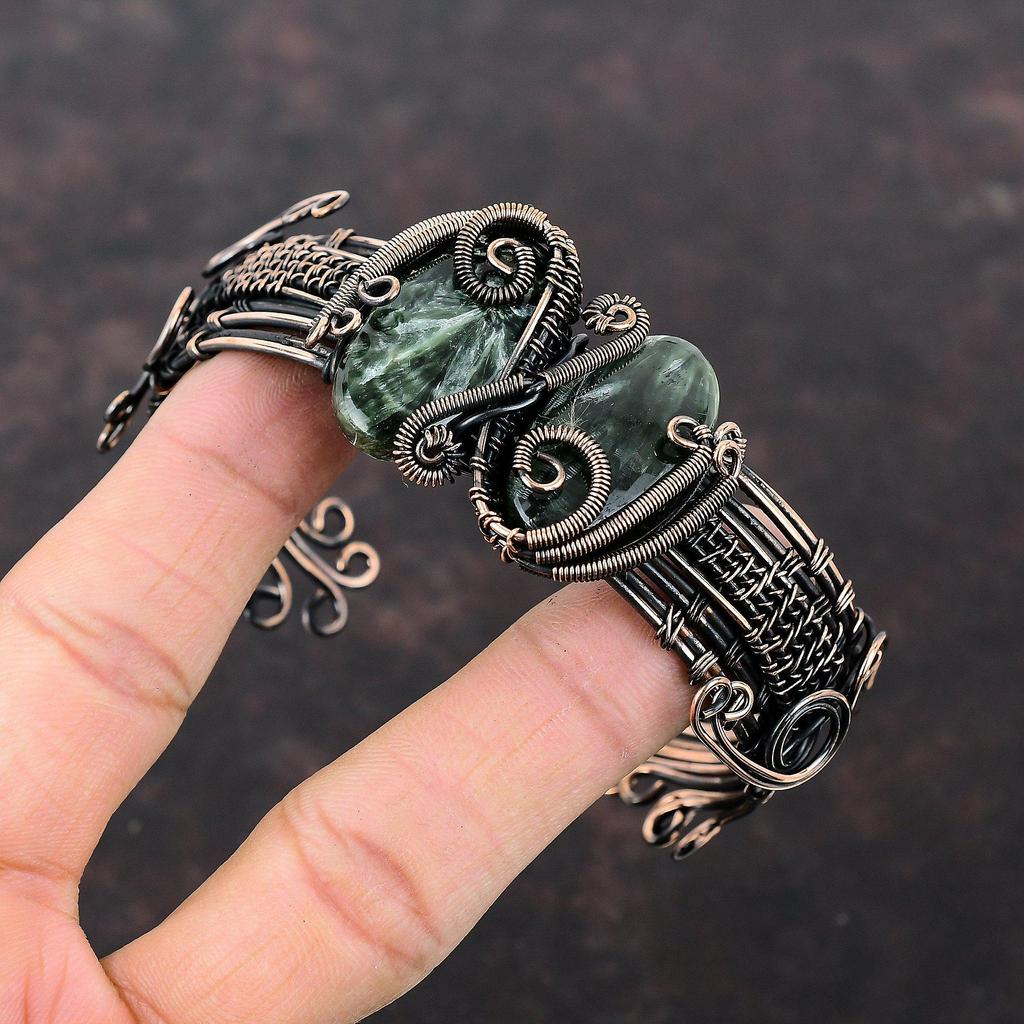 Браслет с серафинитом, медная проволока, ювелирные изделия из драгоценных камней, регулируемый браслет, ювелирные изделия ручной работы, медный браслет-манжета, браслет, завернутый в проволоку, для подарка