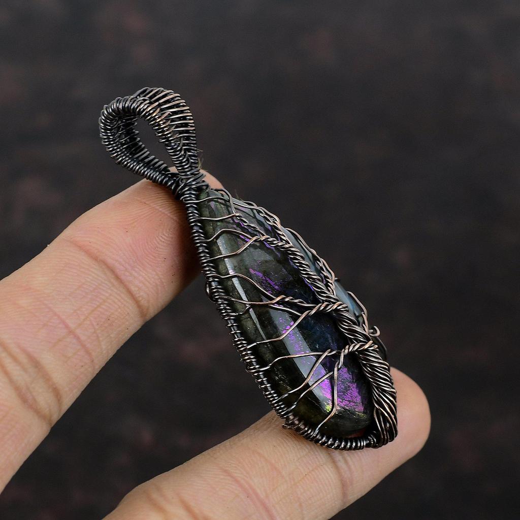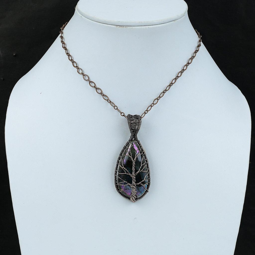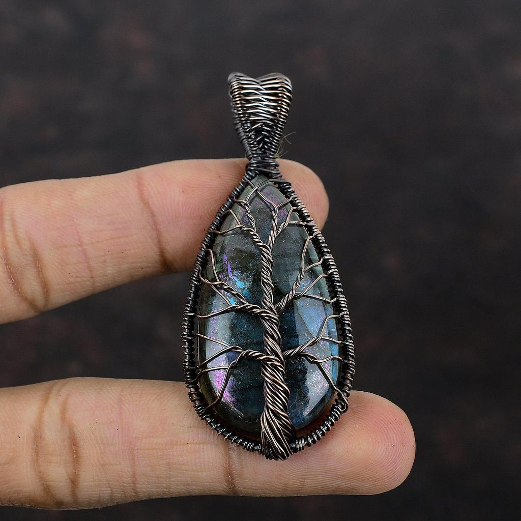 Подвеска Древо Жизни Мистический Огонь Лабрадорит Медная Оплетка Подвеска с Драгоценным Камнем Медные Украшения Подарок для Нее Украшения из Проволоки Ручной Работы