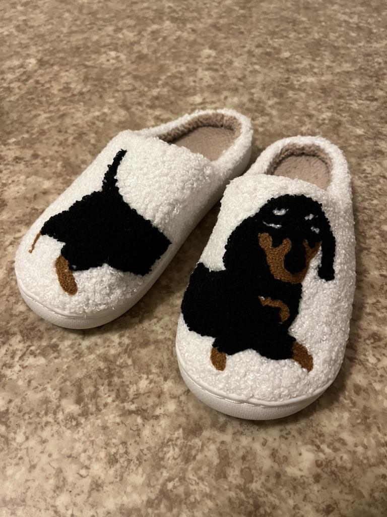 Ультра-уютные домашние тапочки с принтом собаки таксы — теплая, противоскользящая подошва с тихим протектором — идеально подходят для зимнего отдыха дома. Мягкая удобная домашняя обувь.