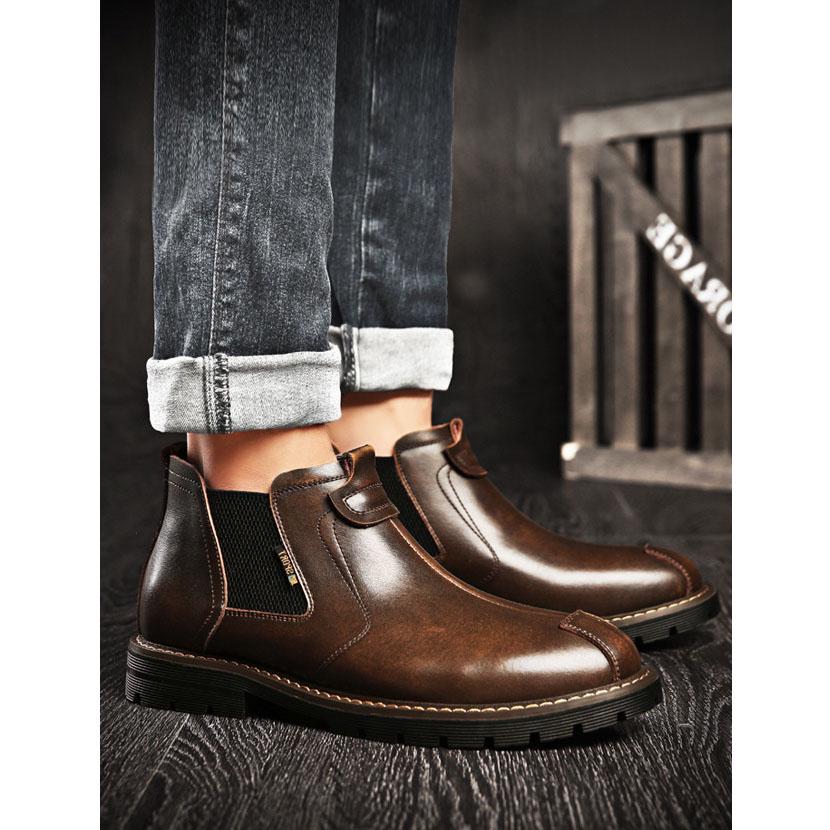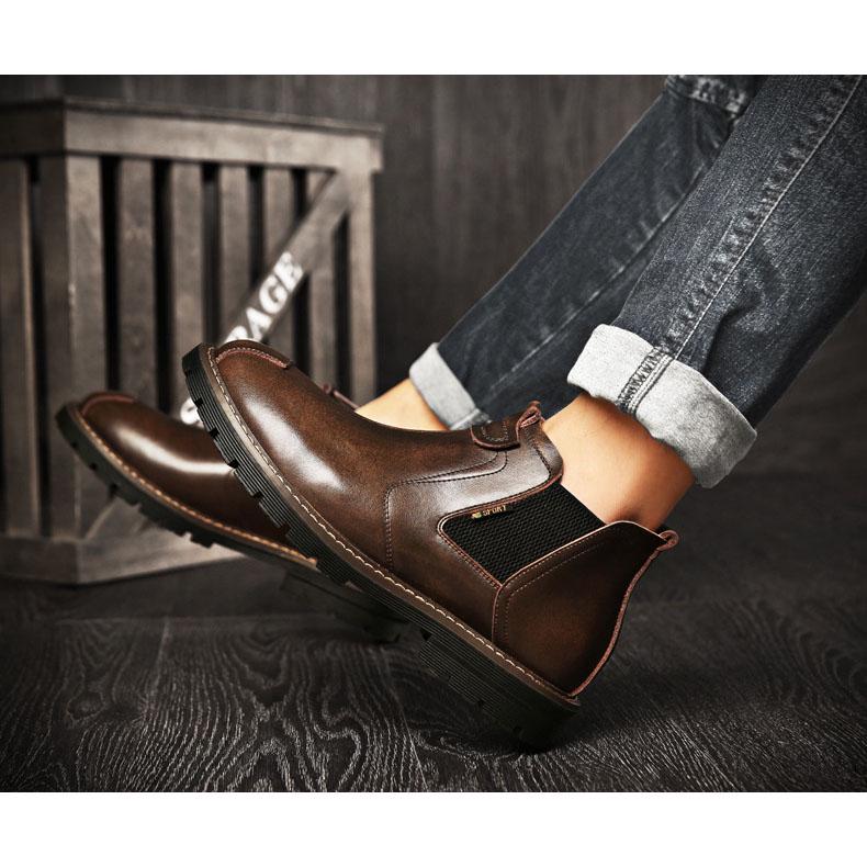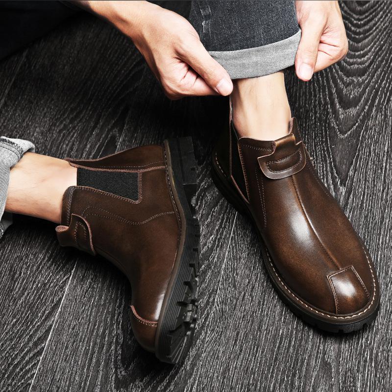 Осень-зима Мужские модные ботинки Ботинки из натуральной кожи Повседневные высокие ботинки Ботинки челси