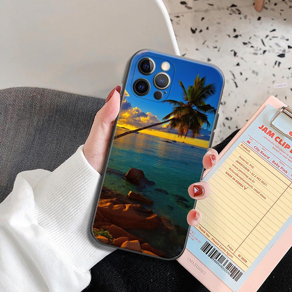 Чехол для телефона iPhone 11 12 13 Pro 2022 7 8 SE XR XS Max 5 5S 6 6s Plus, мягкий силиконовый чехол, летний чехол с морскими пальмами
