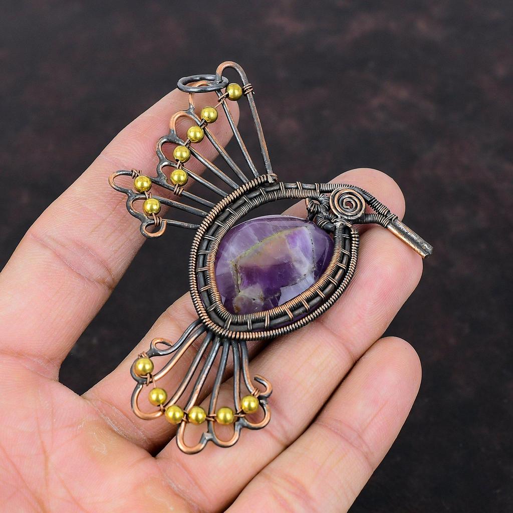 Кулон со звездой и аметистом, кулон в медной проволоке, ювелирные изделия ручной работы, уникальный кулон в виде птицы, удивительные медные украшения, кулон с драгоценным камнем, подарок для жены — купить товар онлайн с бесплатной доставкой по всему миру!