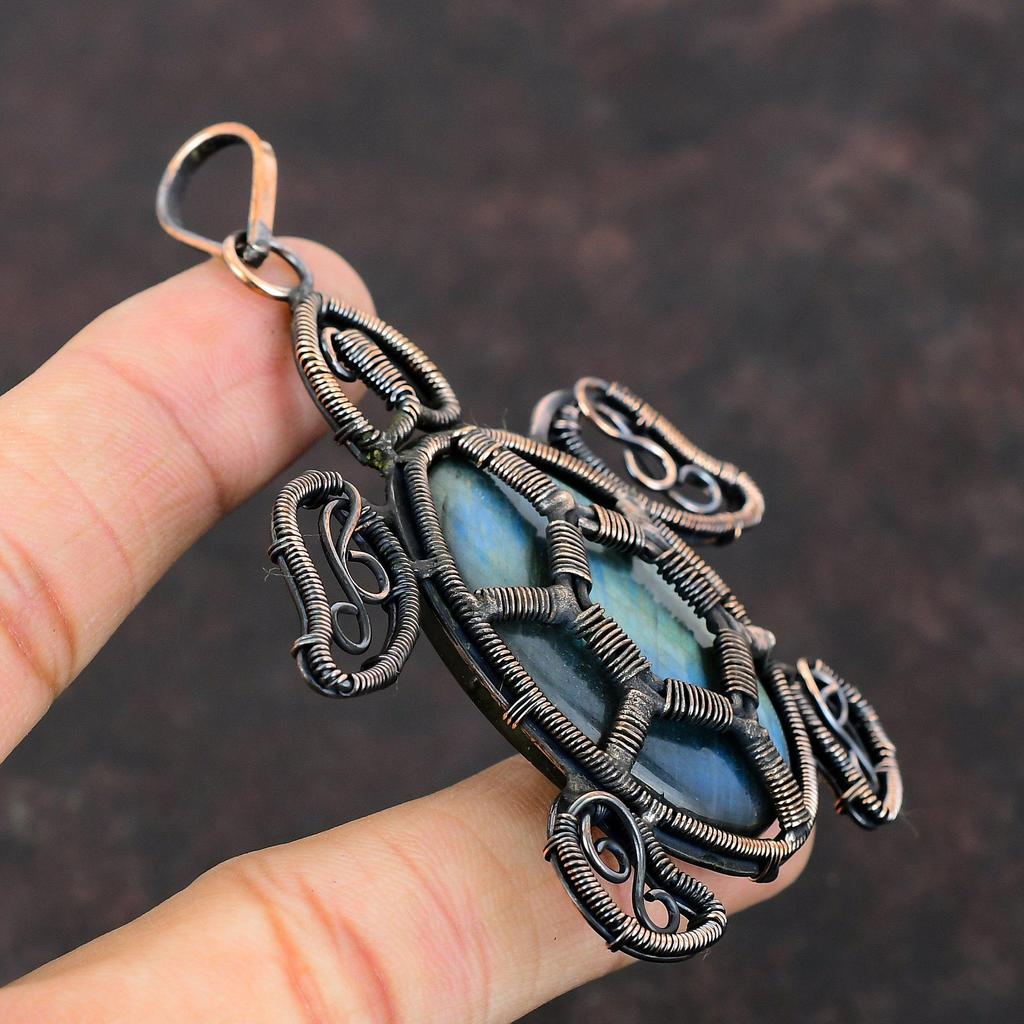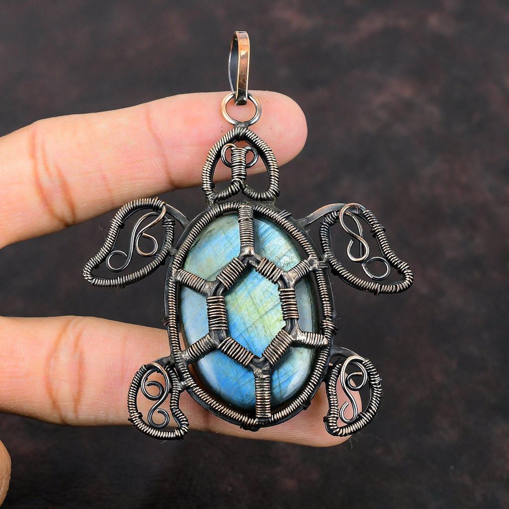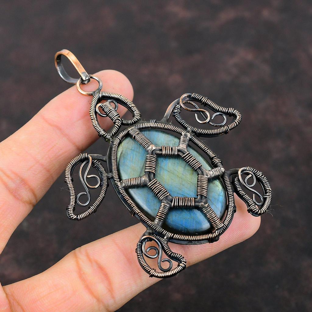 Подвеска из лабрадорита с драгоценным камнем, медная проволока, кулон, медные украшения ручной работы, очень красивая подвеска в виде черепахи, изысканные ювелирные изделия, подарок на помолвку