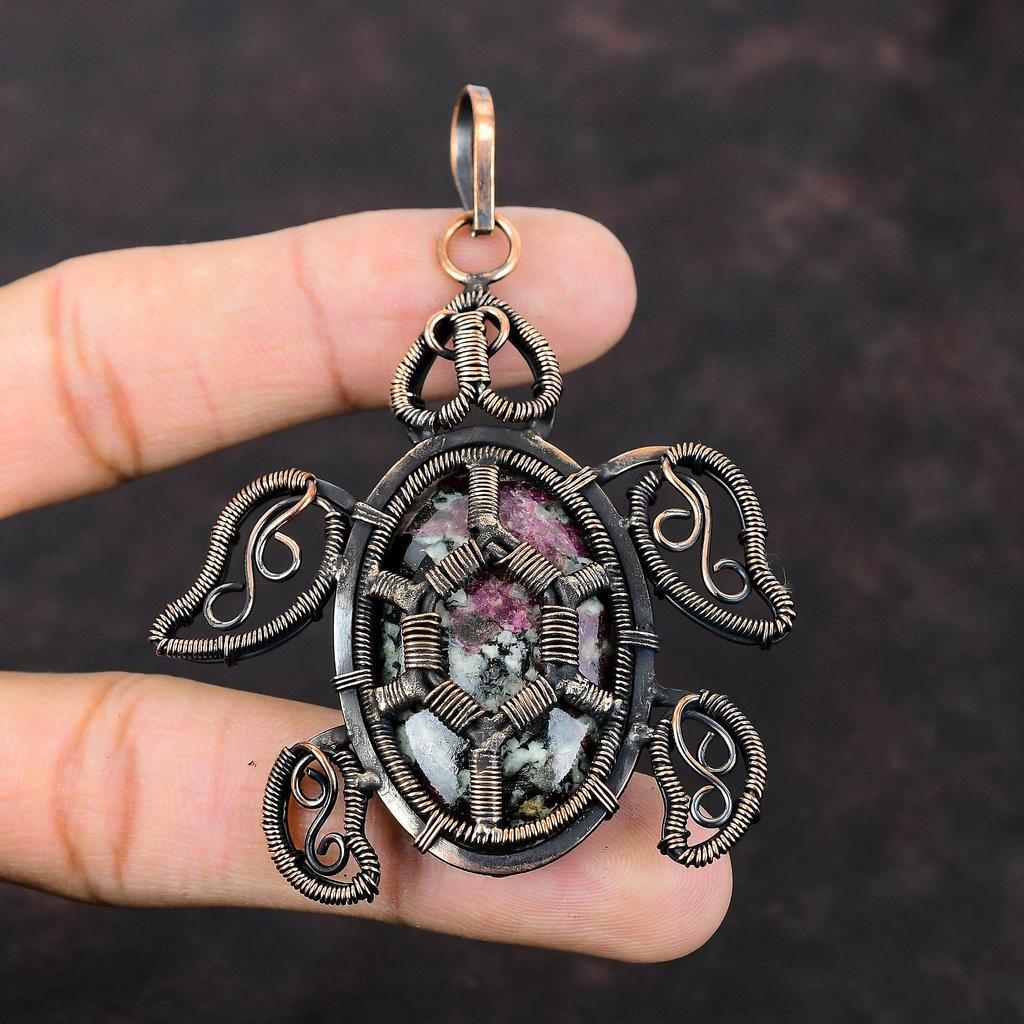 Эвдиалит Медный Кулон Украшения из Медной Проволоки Ручной Работы Кулон с Драгоценным Камнем Украшения из Эвдиалита Кулон в Виде Черепахи Кулон из Проволоки Для Подарка