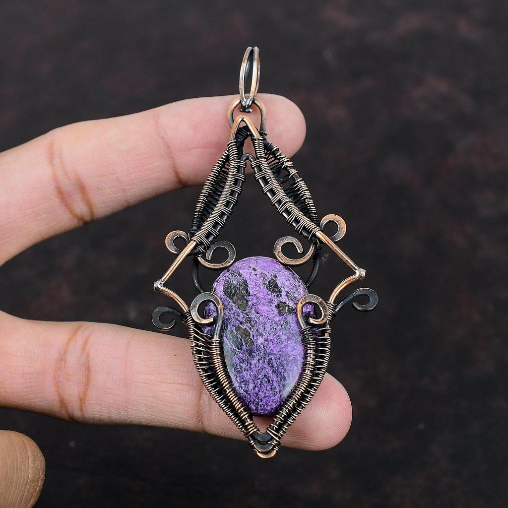 Пурпуритовый кулон, медная проволока, обернутая кулоном, дизайнерский кулон, проволочная обертка, ювелирное изделие ручной работы, кулон с драгоценным камнем, медные украшения для подарка