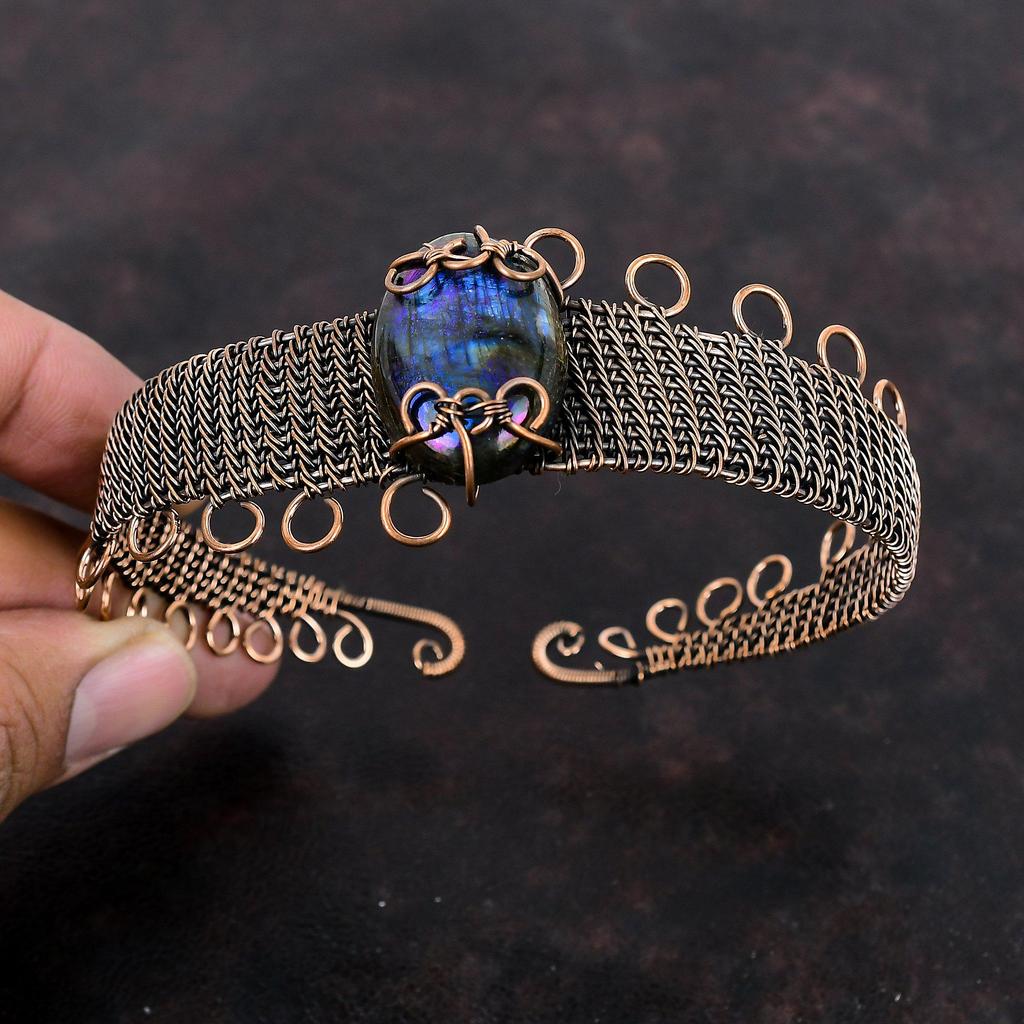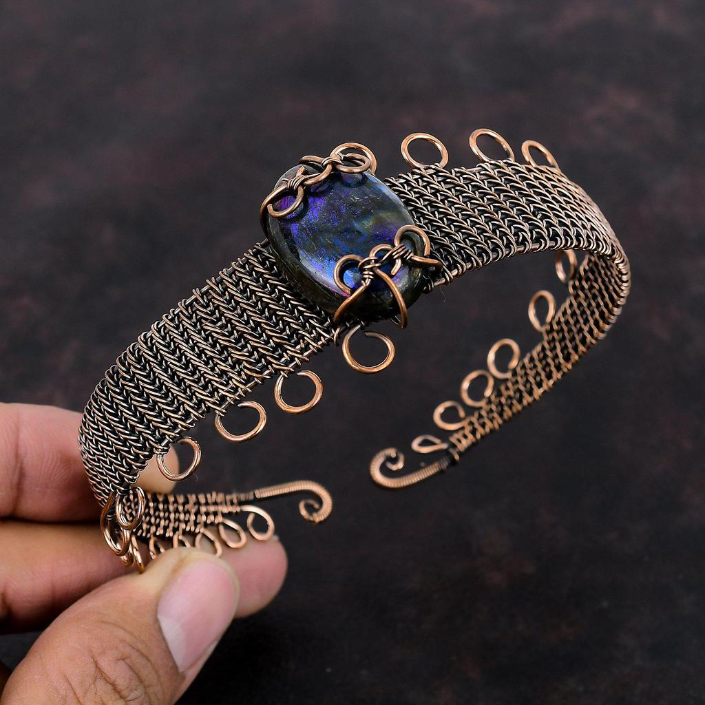 Мистический огонь, лабрадорит, браслет-манжета, браслет из медной проволоки, браслет ручной работы, браслет из драгоценных камней, регулируемый браслет-манжета, медные украшения для подарка