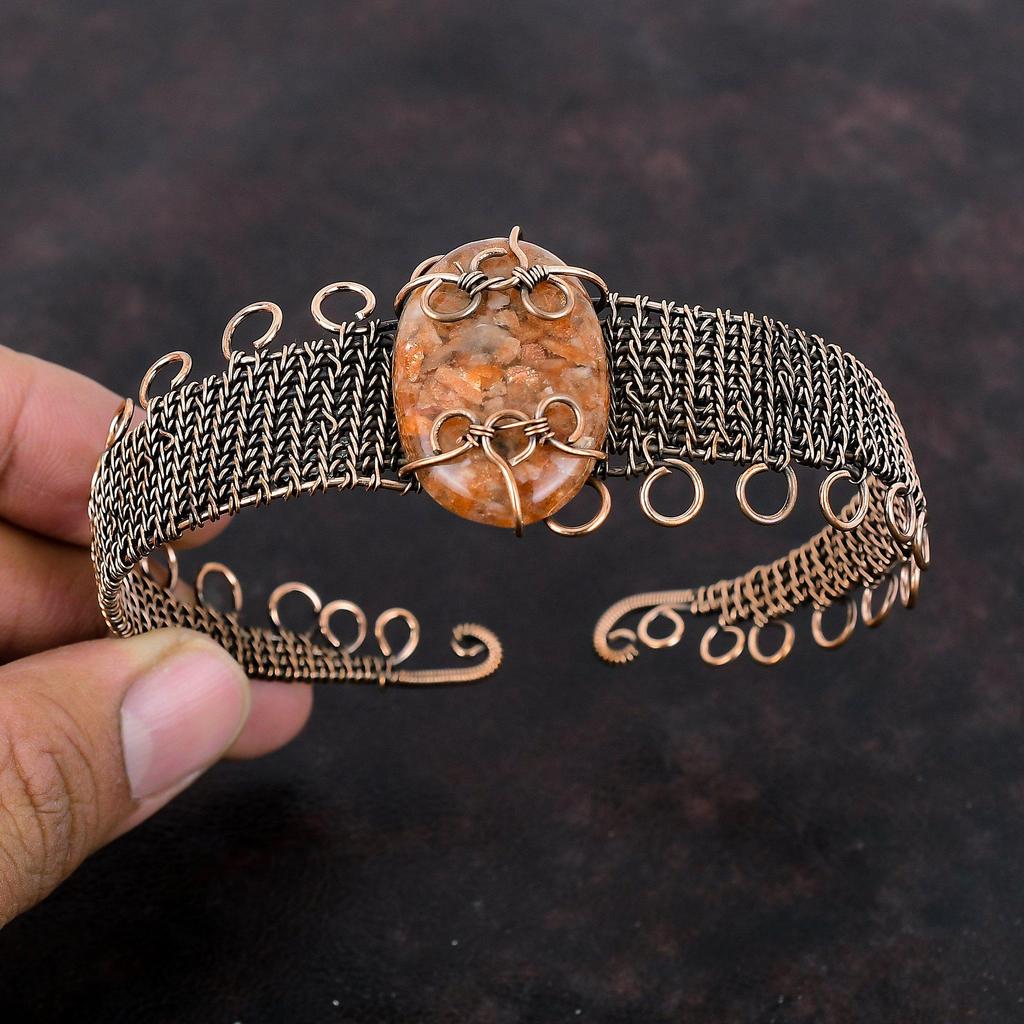 Браслет из солнечного камня, медная проволока, браслет-манжета, регулируемый браслет, ювелирные изделия из солнечного камня, драгоценные камни, манжеты ручной работы, медные украшения, подарок на годовщину — купить товар онлайн с бесплатной доставкой по всему миру!