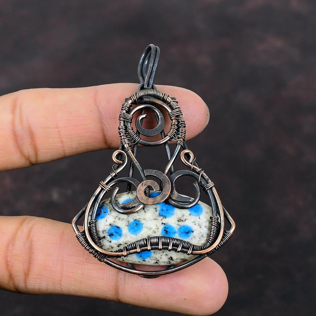 Подвеска из яшмы K2, подвеска, оплетенная медной проволокой, подвеска из оригинального драгоценного камня, медные украшения, подвеска ручной работы, подарок на помолвку, обертывание украшений