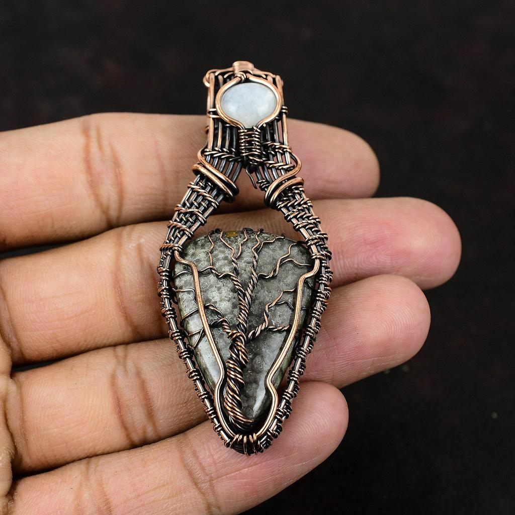 Кулон "Древо Жизни" Скат Коралл Медная проволока Обернутый кулон Камень Ручная работа Дизайнерские украшения Кулон с радужным лунным камнем Подарок для мамы