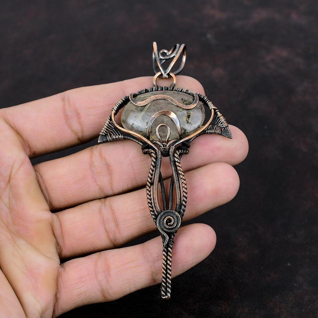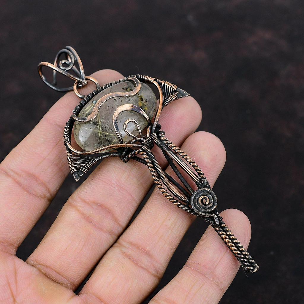 Подвеска из золотого рутила, обернутая медной проволокой, подвеска из натурального драгоценного камня, свадебные украшения, антикварный кулон ручной работы, медные украшения для подарка