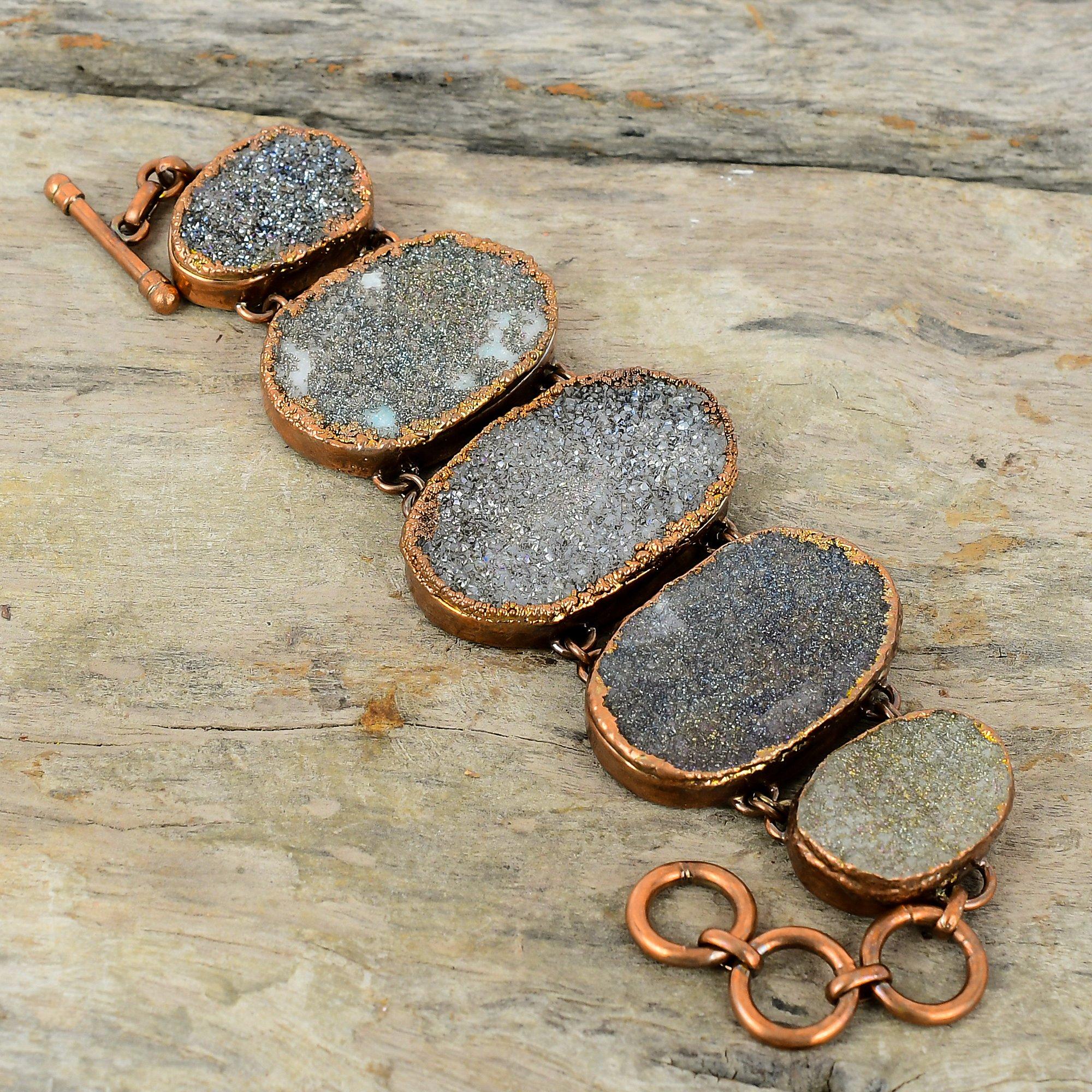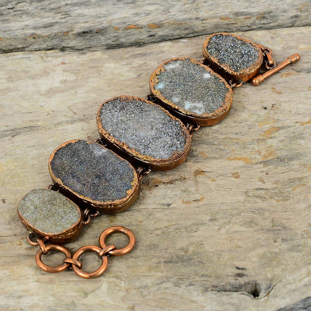 Серебряный браслет Druzy, электроформованный медный браслет, регулируемый браслет-цепочка, браслет ручной работы из настоящих драгоценных камней, электроформованные ювелирные изделия для подарка
