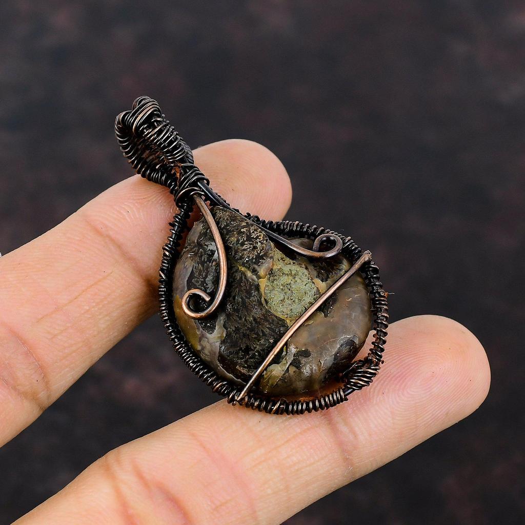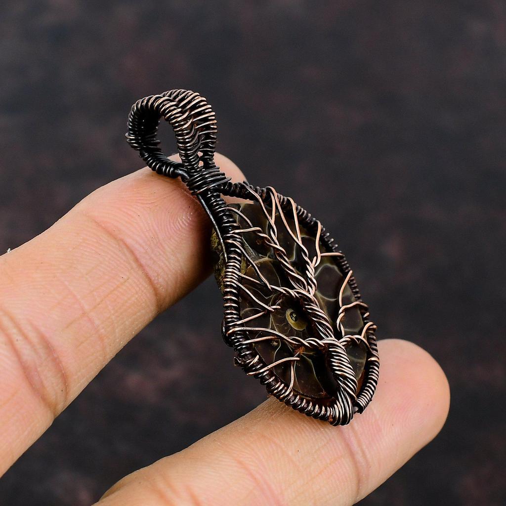Tree Of Life Ammonite Fossil Pendant Copper Wire Wrapped Pendant Gemstone Jewelry Handmade Pendant Gift For Mother Copper Wire Wrap Jewelry