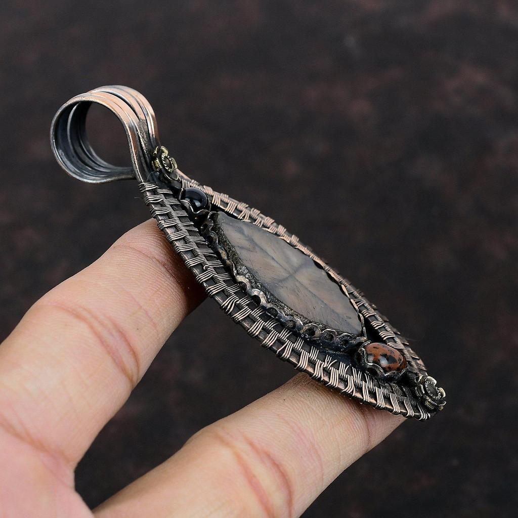Подвеска из драгоценного камня хиастолит, подвеска из медной проволоки, подвеска из красного дерева, обсидиана и синего солнечного камня, подвеска из проволоки ручной работы для женщин