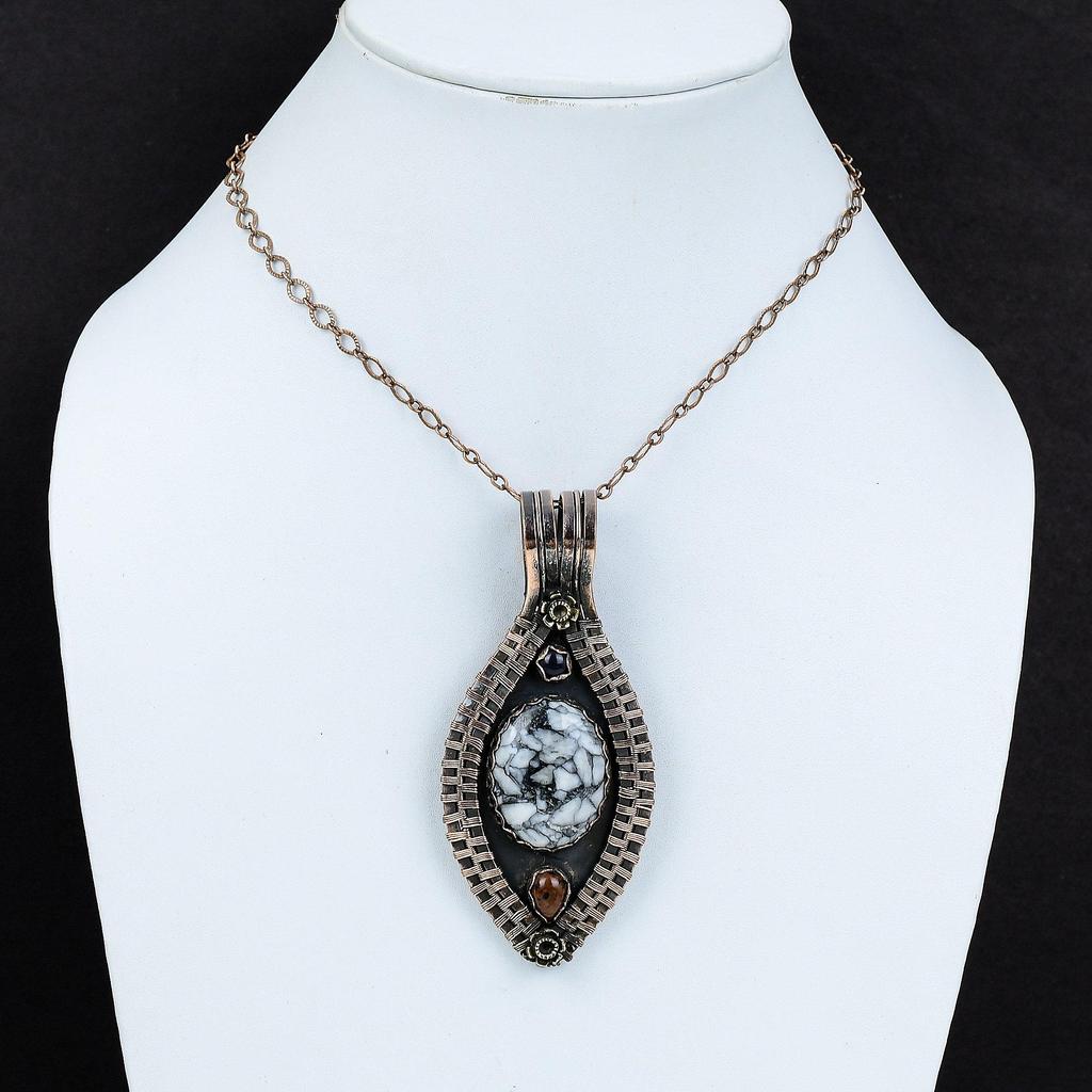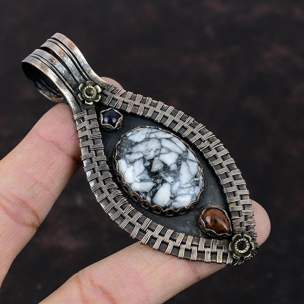 Подвеска из пинолита с яшмой, кулон из медной проволоки, кулон из красного дерева, обсидиана и синего солнечного камня, кулон ручной работы с драгоценным камнем, ювелирные изделия из медной проволоки
