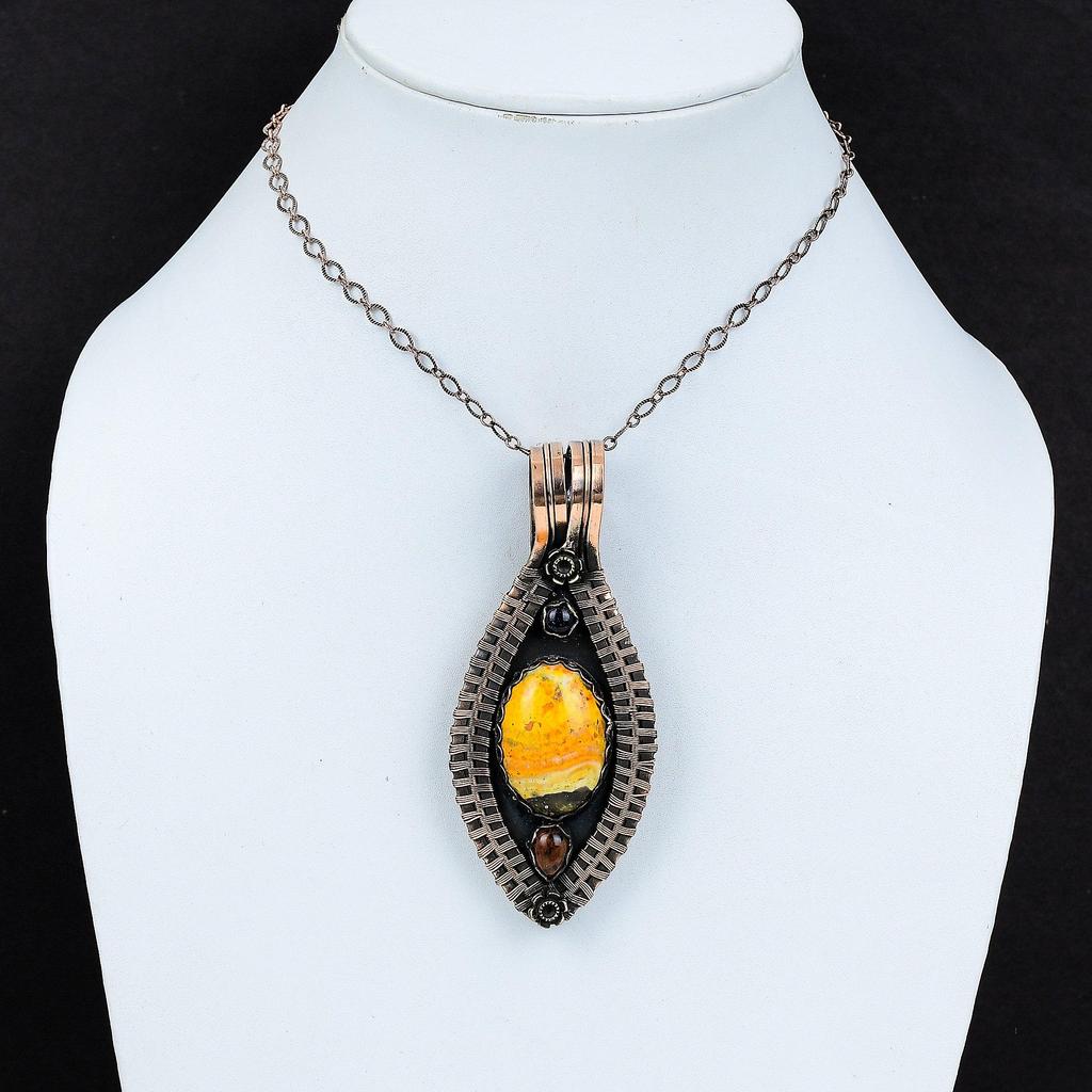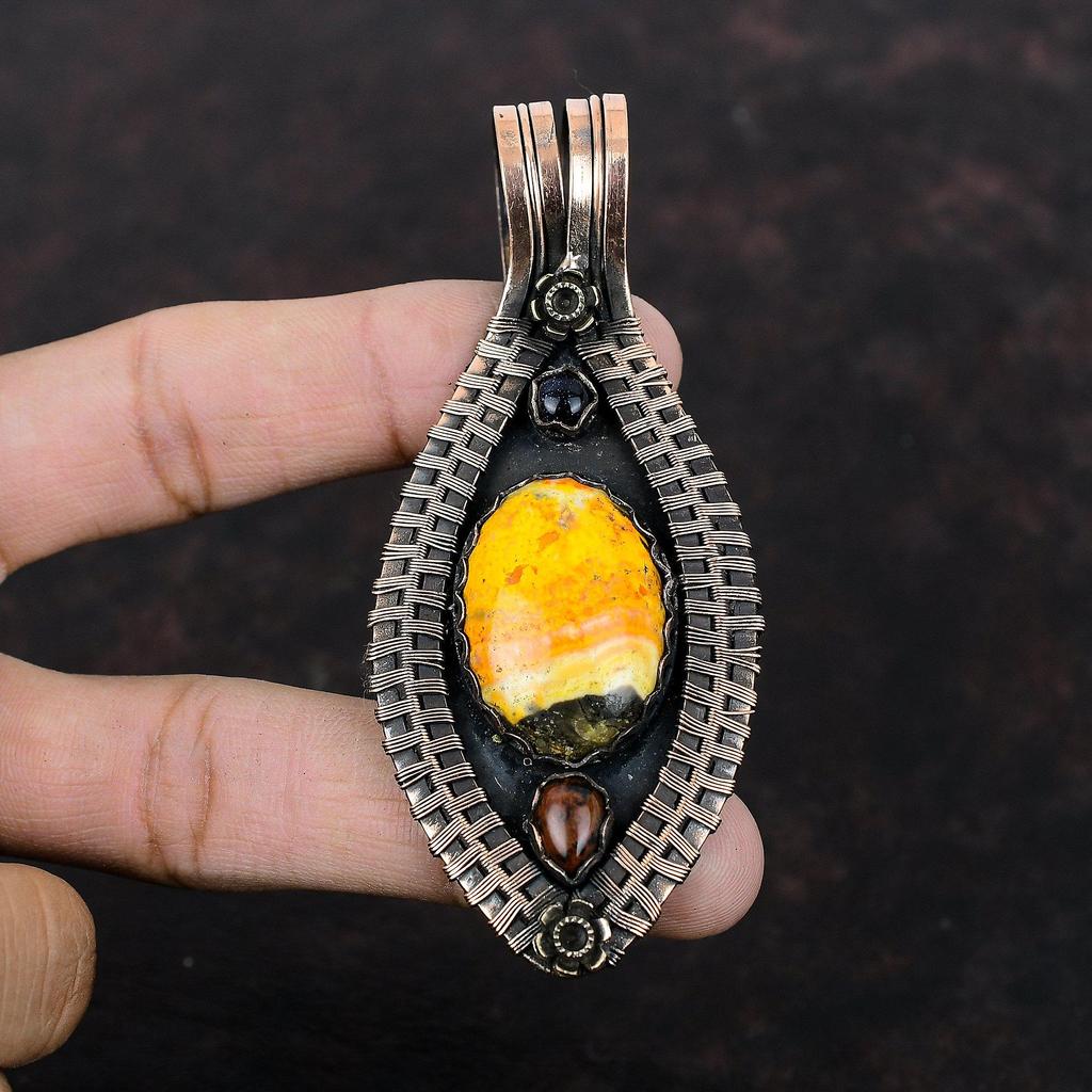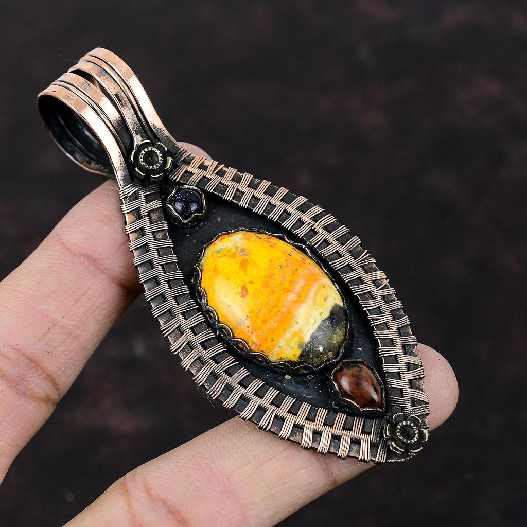 Кулон "Шмель" из яшмы, медная проволока, кулон с драгоценным камнем, красное дерево, обсидиан и синий солнечный камень, кулон из меди, ювелирные изделия ручной работы для подарка