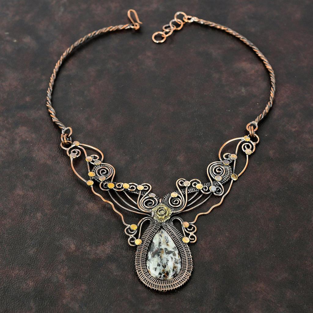 Ожерелье из астрофиллита, ожерелье из медной проволоки, ювелирные изделия ручной работы, регулируемое ожерелье, ожерелье из драгоценных камней, подарок для мамы, ювелирные изделия из медной проволоки