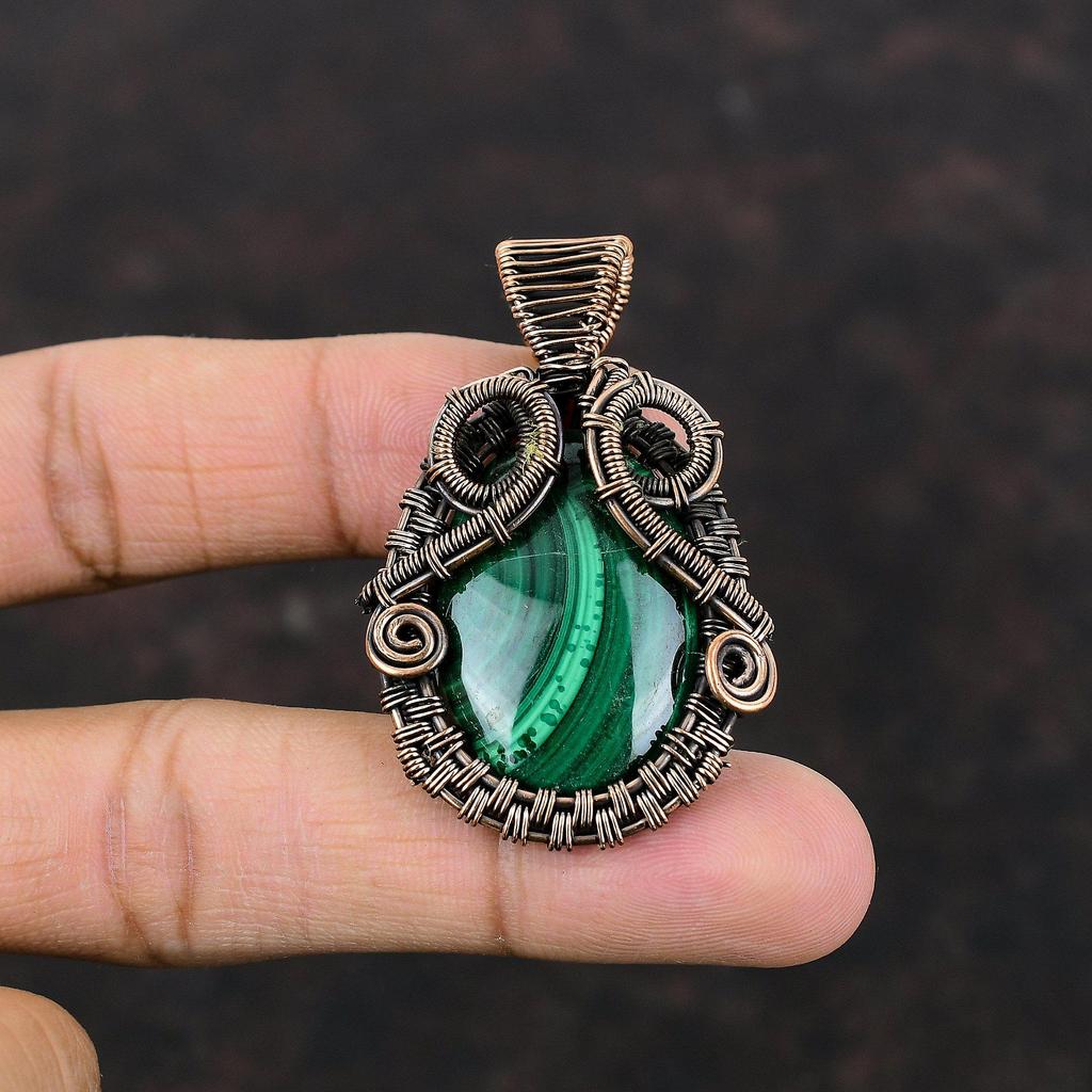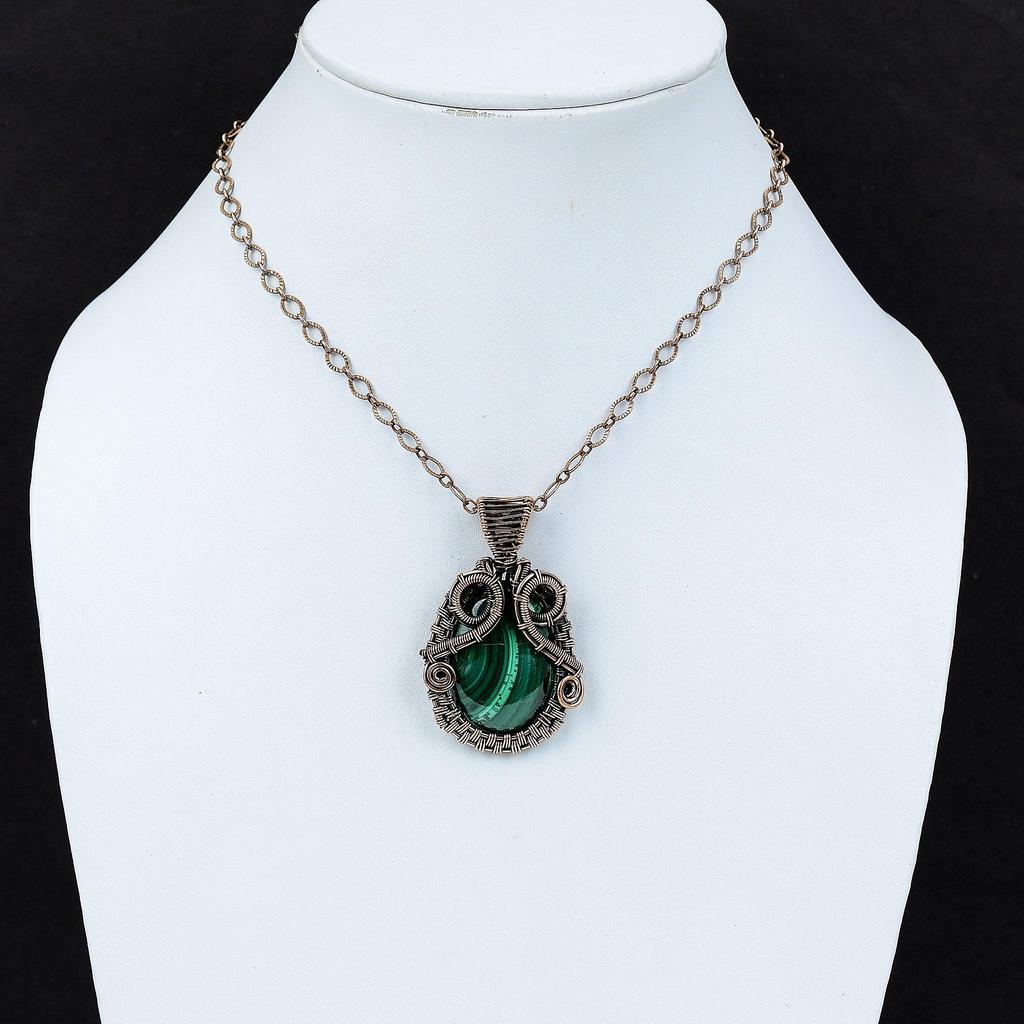 Малахитовый кулон, обернутый медной проволокой, оригинальный кулон из драгоценных камней, малахитовые украшения, медная проволока, подарок для мамы, подвески ручной работы
