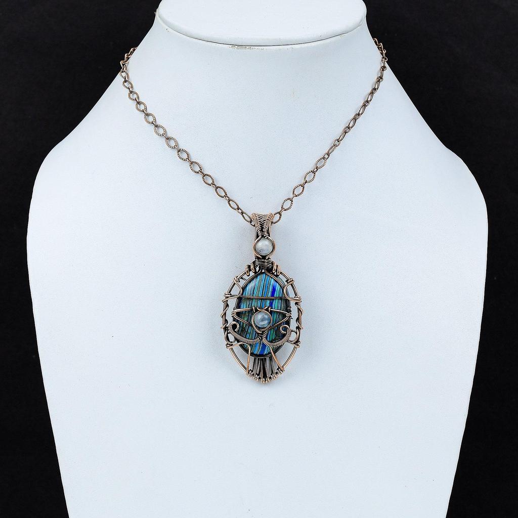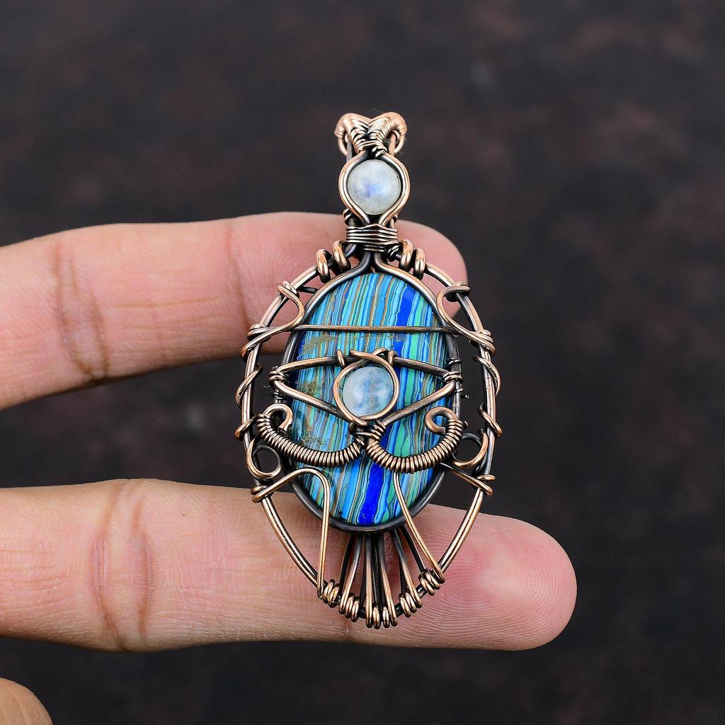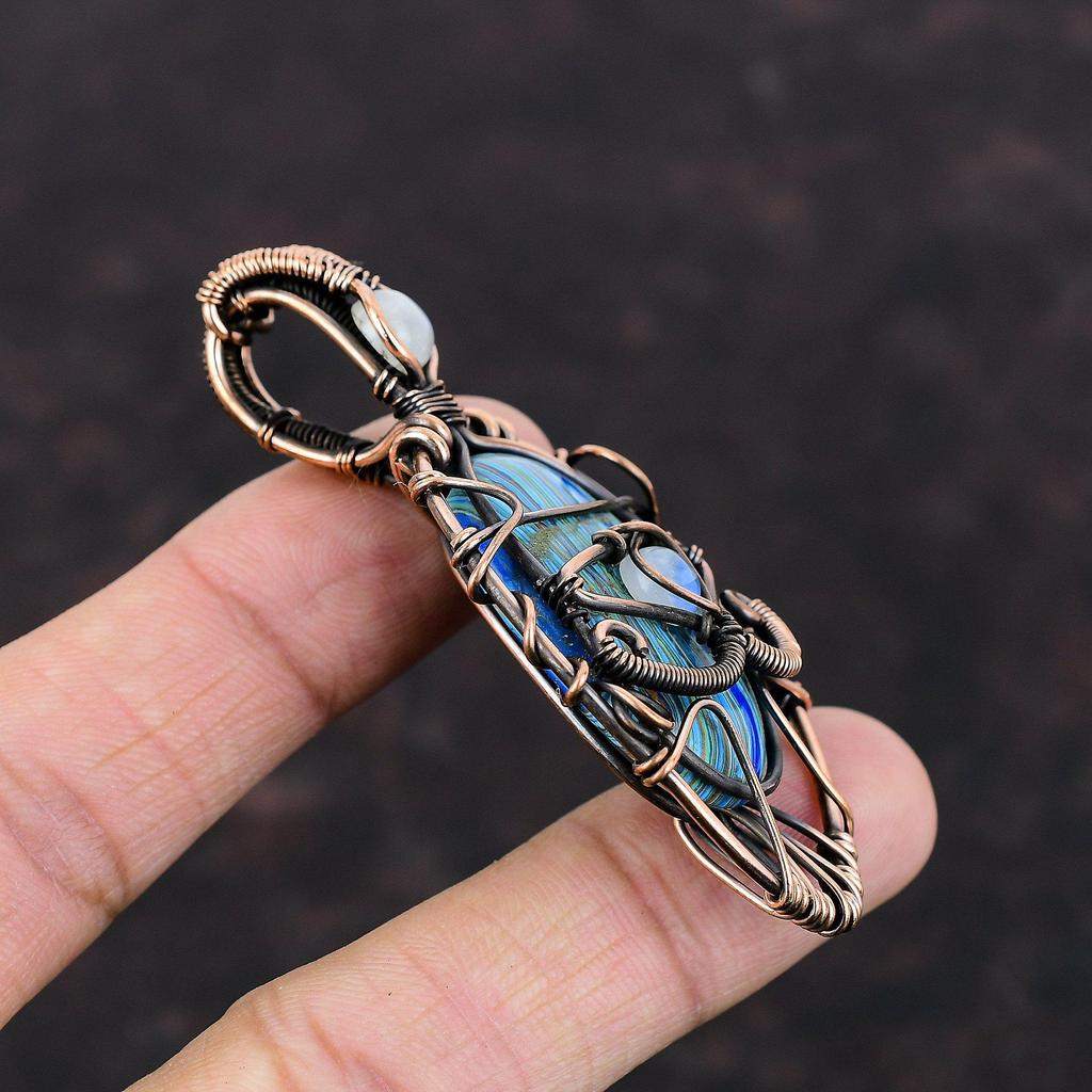 Сглаз, Радуга, Кулон из кальцинированного кремния, Медная проволока, Обернутая подвеска, Радужный кулон с лунным камнем, Медные украшения для подарка, Подвески с драгоценными камнями ручной работы
