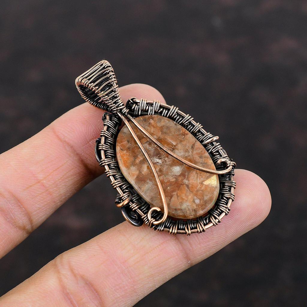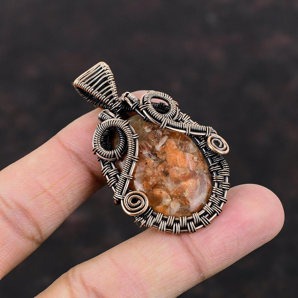 Подвеска Sunstone, подвеска из медной проволоки, ювелирное изделие Sunstone, подвеска из драгоценных камней, ювелирное изделие из медной проволоки, подарок на помолвку, стильный кулон ручной работы