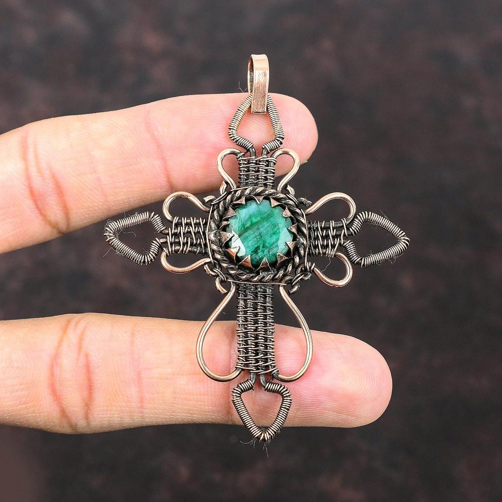 Кулон с ограненным замбийским изумрудом, обернутый медной проволокой, крест, драгоценный камень, ювелирное изделие, уникальная подвеска ручной работы, медный крест, ювелирное изделие, подарок для нее — купить товар онлайн с бесплатной доставкой по всему миру!