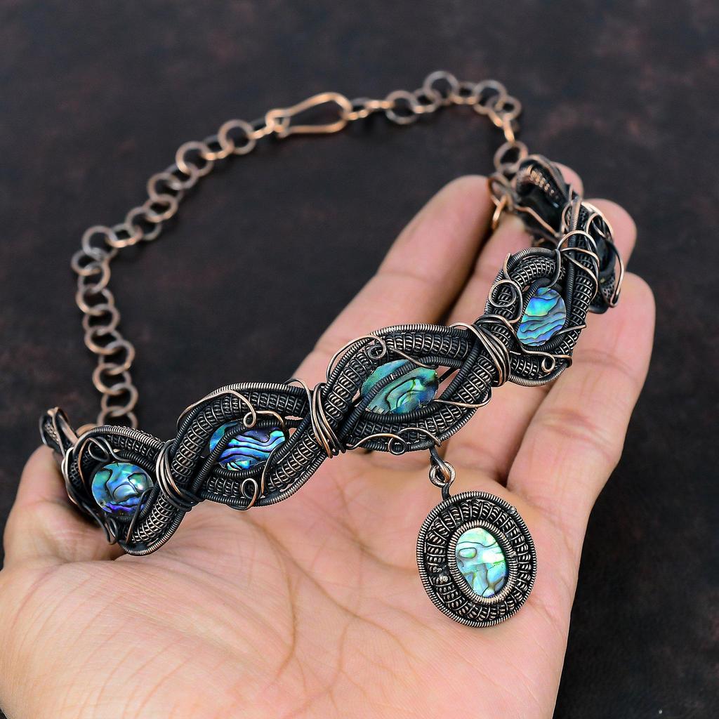 Ожерелье из ракушки морского ушка, ювелирные изделия из медной проволоки, регулируемая цепочка ручной работы, ожерелье из медной проволоки, ювелирные изделия из драгоценных камней для подарков