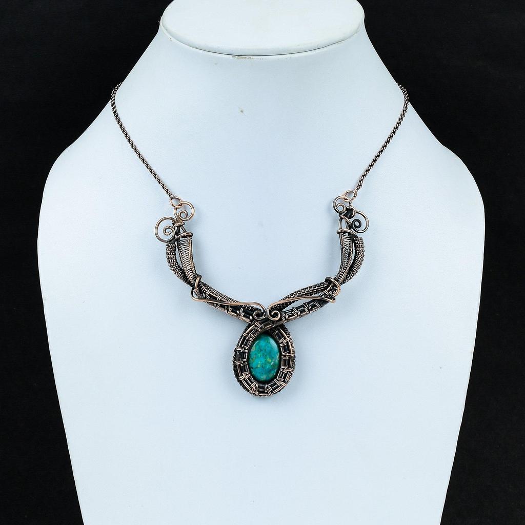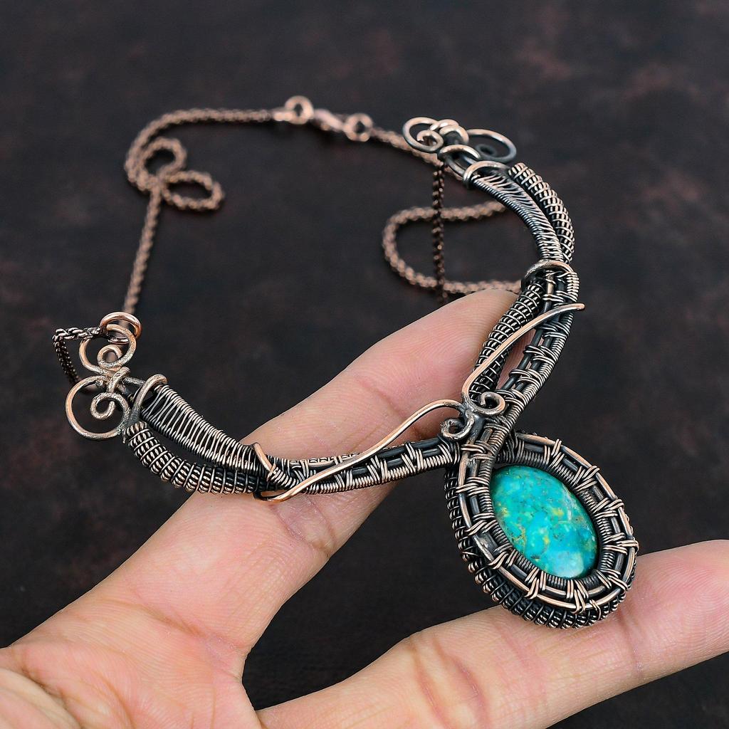 Ожерелье из хризоколлы с драгоценными камнями, ювелирные изделия из медной проволоки, медное ожерелье ручной работы, уникальное ожерелье, подарок для мамы, красивое ожерелье из проволочной обмотки