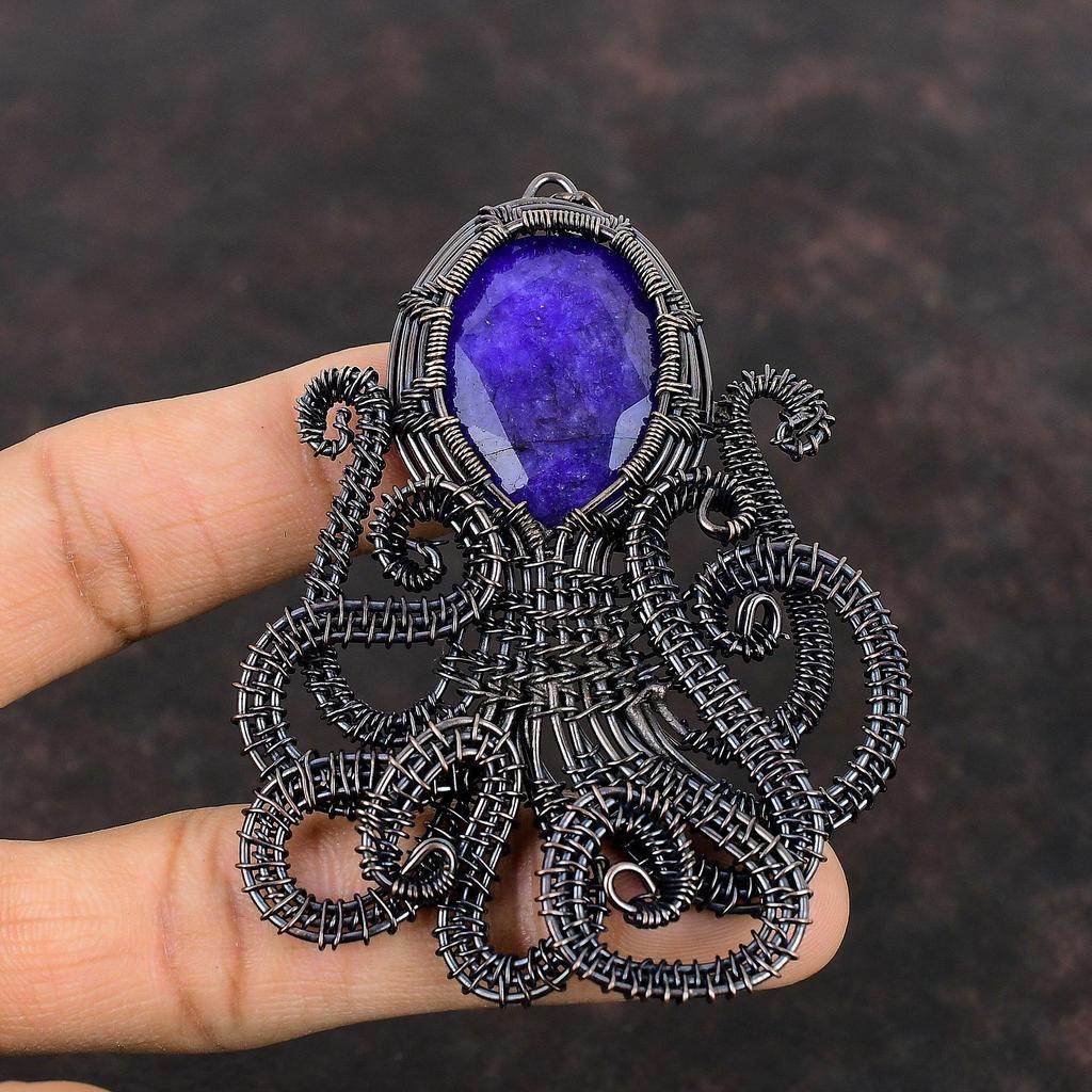 Ограненный Синий Сапфир Кулон Медная Проволока Обернутый Кулон Ювелирные Изделия Из Драгоценных Камней Кулон Осьминог Кулон Ручной Работы Медная Проволока Ювелирные Изделия Подарок Для Нее