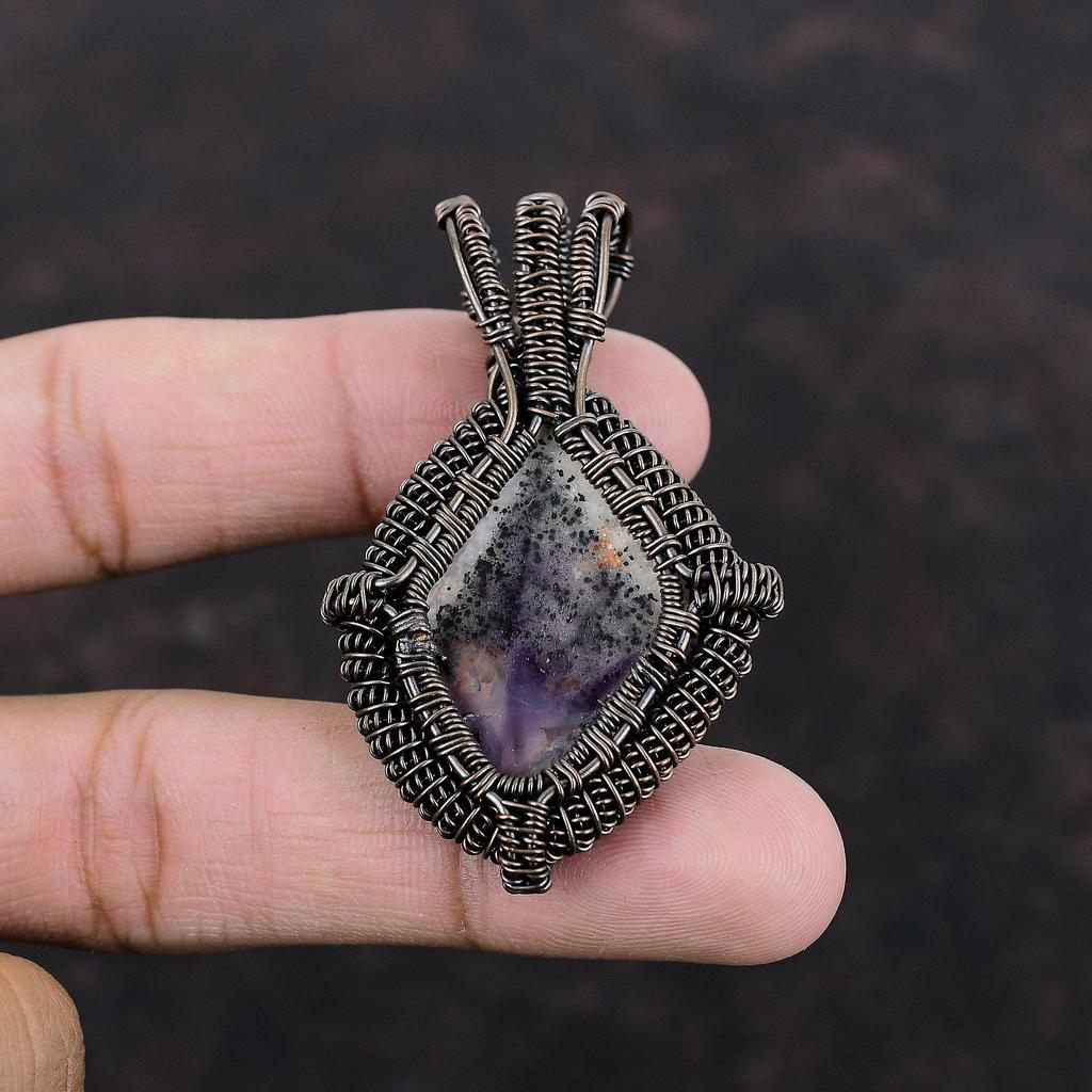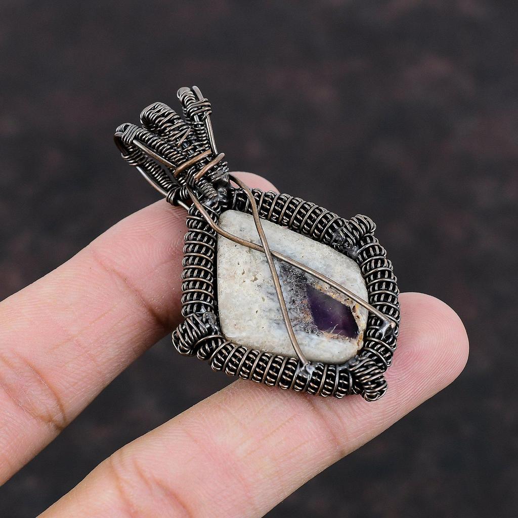 Кулон из драгоценного камня аметист 23, медная проволока, обернутая в кулон, уникальное медное ювелирное изделие, элегантный кулон, ручная работа, проволочное ювелирное изделие для подарка